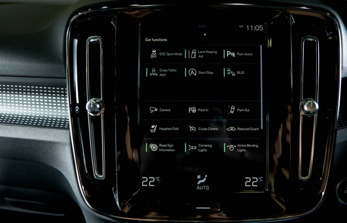 หน้าจอทัชสกรีนส่วนกลางรุ่นที่เคยคว้ารางวัลมาแล้วได้ถูกนำมาติดตั้งใน XC40 เพียงแค่แตะและปัดเบา ๆ ก็สามารถใช้งานระบบนำทาง รวมถึงฟังก์ชั่นและแอปพลิเคชั่นต่าง ๆ ได้อย่างง่ายดายเหมือนคุณกำลังใช้แท็บเล็ต นอกจากนี้ ฟังก์ชั่นการสั่งงานด้วยเสียงยังทำให้คุณสามารถควบคุมการทำงานของรถได้ง่ายดายยิ่งกว่าในขณะขับขี่ พร้อมระบบ Apple CarPlay และ Android Auto เพื่อการเชื่อมต่อกับอุปกรณ์ไอทีของคุณได้อย่างราบรื่น สำหรับจอแสดงผลของนักขับก็มีความชัดเจนและดูข้อมูลได้ง่าย โดยนักขับยังสามารถควบคุมระบบเสียงและการทำงานของเครื่องยนต์ได้จากจอนี้เพื่อการควบคุมที่ง่ายดายและรวดเร็ว จอยังสามารถปรับความสว่างได้อย่างชาญฉลาดตามลักษณะแสงของสภาพแวดล้อม