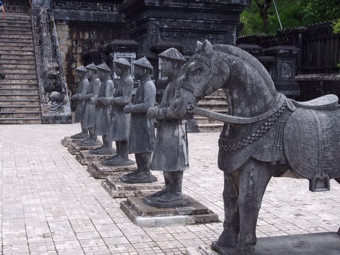 และตามมาด้วยสุสานจักรพรรดิไคดิงห์ (Tomb of Khai Dinh) ที่ได้ชื่อว่ามีความยิ่งใหญ่สวยงามเหนือบรรดาสุสานจักรพรรดิทั้งหมด และเป็นเพียงสุสานเดียวที่มีการผสมผสานระหว่างสถาปัตยกรรมตะวันออก-ตะวันตกได้อย่างลงตัว ตั้งอยู่บนเนินเขาสูง มีบันไดทางขึ้นถึง 127 ขั้น เป็นบันไดมังกรพาขึ้นไปสู่ลานชั้นหนึ่ง ส่วนลานชั้นสองเรียงราบด้วยรูปปั้นหินของช้าง ม้า ข้าราชการทหารและพลเรือน กลางลานมีแผ่นจารึกเขียนด้วยอักษรจีน ด้านบนสุดเป็นที่ตั้งของสุสาน มีรูปปั้นสำริดเท่าองค์จริงของพระเจ้าไคดิ่งเป็นศูนย์กลาง ภายในสุสานชั้นในมีการตกแต่งผนังด้วยกระเบื้องเคลือบสีซึ่งรับอิทธิพลมาจากจีน หลายจุดทำเป็นรูปมังกร หนึ่งในชิ้นงานโดดเด่น คือ งานเขียนสีรูปมังกรในม่านเมฆขนาดใหญ่บนเพดานห้องโถงที่ศิลปินใช้เท่าในการเขียนภาพ