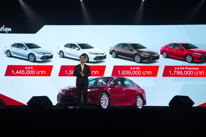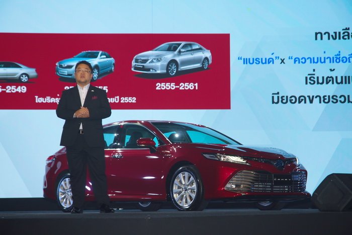 “ตัวแทนจำหน่ายโตโยต้าทั่วประเทศ พร้อมให้การดูแลลูกค้าทุกท่าน และจะมอบความพึงพอใจ ความภาคภูมิใจในการเป็นเจ้าของ รวมไปถึงความรู้สึกสบายใจตลอดระยะเวลาที่ครอบครองรถรุ่นนี้ สุดท้ายนี้ผมขอขอบคุณรัฐบาลไทย ที่ให้การสนับสนุนการส่งเสริมใช้พลังงานทางเลือกอย่างต่อเนื่อง ทำให้คนไทยสามารถเป็นเจ้าของรถยนต์ที่มีเทคโนโลยีขั้นสูงอย่าง คัมรีใหม่ ได้ในราคาที่เหมาะสม และผมยินดีที่จะแจ้งให้ทุกท่านทราบถึงความคืบหน้าในการผลิตแบตเตอรีภายในประเทศ เราจะเริ่มต้นการผลิตในกลางปี 2562 ที่โรงงานเกตุเวย์ จังหวัดฉะเชิงเทรา เพื่อตอบสนองนโยบายของภาครัฐ” มร.มิจิโนบุ ซึงาตะ กล่าวในที่สุด