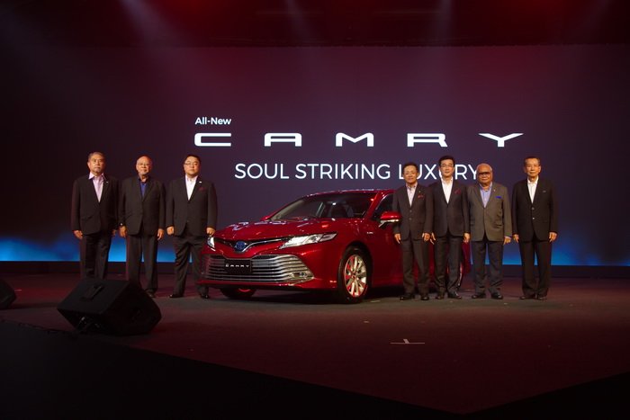 มร.มิจิโนบุ ซึงาตะ เจ้าหน้าที่บริหาร บริษัท โตโยต้า มอเตอร์ คอร์ปอเรชั่น และกรรมการผู้จัดการใหญ่ บริษัท โตโยต้า มอเตอร์ ประเทศไทย จำกัด มร.ฮิเดโอะ ซึกานูมะ ผู้ช่วยหัวหน้าวิศวกร บริษัท โตโยต้า มอเตอร์ คอร์ปอเรชั่น และนายวุฒิกร สุริยะฉันทนานนท์ รองกรรมการผู้จัดการใหญ่ บริษัท โตโยต้า มอเตอร์ ประเทศไทย จำกัด ร่วมแถลงข่าวแนะนำรถยนต์ซีดานขนาดกลางสุดหรูรุ่นใหม่ล่าสุด "The All-New CAMRY…Soul Striking Luxury”