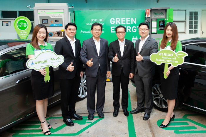 นายหลักชัย สุทธิชูจิต กรรมการผู้จัดการ บริษัท อาคเนย์ประกันภัย จำกัด (มหาชน) (คนที่ 4 จากซ้าย) ได้ร่วมลงนามในบันทึกข้อตกลง เรื่อง “โครงการติดตั้งสถานีอัดประจุไฟฟ้าสำหรับยานยนต์ไฟฟ้า” กับ นายสมโภชน์ อาหุนัย ประธานเจ้าหน้าที่บริหาร บริษัท พลังงานมหานคร จำกัด (คนที่ 3 จากซ้าย) เพื่อทำการติดตั้งสถานีอัดประจุไฟฟ้าสำหรับยานยนต์ที่อาคารอาคเนย์สำนักงานใหญ่สีลม โดยเล็งเห็นความสำคัญของการรักษาสิ่งแวดล้อมด้วยพลังงานสะอาด พร้อมทั้งรองรับการเติบโตของอุตสาหกรรมยานยนต์ไฟฟ้าของประเทศไทยในอนาคต