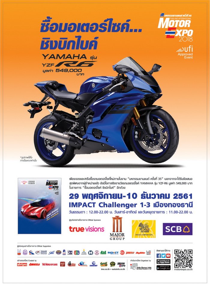 3. “ซื้อมอเตอร์ไซค์...ชิงบิกไบค์” เมื่อจองหรือซื้อรถจักรยานยนต์ใหม่ในงานมีสิทธิ์ชิงรางวัลรถจักรยานยนต์ YAMAHA รุ่น YZF-R6 มูลค่า 549,000 บาท จำนวน 1 รางวัล