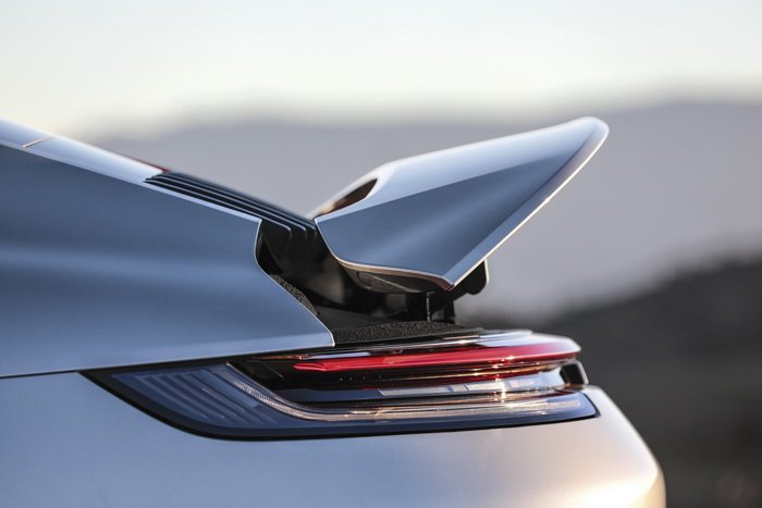 งานออกแบบภายนอกใหม่ สมบูรณ์แบบด้วยรูปลักษณ์ที่เน้นสมรรถนะชั้นเลิศของ Porsche 911 รหัสตัวถัง ‘992’ เริ่มจากซุ้มล้อที่ได้รับการขยายความกว้างยิ่งขึ้น เพื่อรองรับล้ออัลลอยขนาด 20 นิ้ว ที่คู่หน้า และ 21 นิ้ว ที่คู่หลัง มุมมองด้านหน้ารถถูกปรับให้มีการเปลี่ยนแปลงไปในทิศทางเดียวกับสายพันธุ์ Porsche โมเดลอื่นๆ เส้นสายที่พลิ้วไหวถูกวางตามแนวยาวจากหน้าจรดหลัง กันชนหน้ากว้างขึ้น 45 มิลลิเมตร ให้ความต่อเนื่องกลมกลืนมาถึงมือเปิดประตูแบบ electrical pop-out handles ก่อเกิดพื้นผิวด้านข้างรถที่เรียบเนียน โค้งมนราวกับไม่มีจุดสิ้นสุด สิ่งที่วางตัวระหว่างโคมไฟหน้า LED แบบใหม่ คือฝากระโปรงที่ยังคงเต็มเปี่ยมไปด้วยเอกลักษณ์เฉพาะตัวของนับจาก Porsche 911 เจเนอเรชั่นแรก ตัวถังด้านท้ายขยายกว้าง ตอกย้ำถึงความเป็นรถสปอร์ตยุคใหม่ เสริมความแข็งแกร่งดุดันด้วยชุดสปอยเลอร์หลังปรับระดับได้ สะกดทุกสายตาด้วยแถบไฟสีแดงคาดยาว ทุกส่วนประกอบของตัวถังภายนอก ล้วนถูกผลิตขึ้นด้วยวัสดุอะลูมิเนียม
