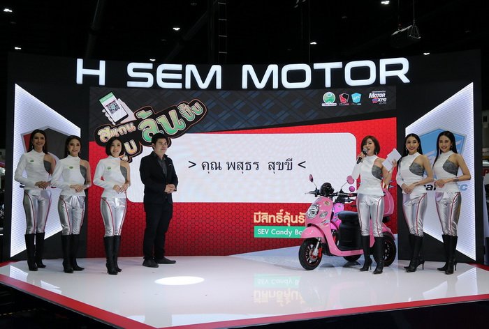 เอช เซม มอเตอร์ ผู้ผลิตและจำหน่ายรถกอล์ฟ รถสามล้อไฟฟ้า (SEV) และรถสามล้ออเนกประสงค์ (STC) จับรางวัลผู้โชคดีจากแคมเปญ “สแกนปุ๊บ ลุ้นปั๊บ” แจกทันทีรถ 3 ล้อไฟฟ้า SEV CANDY BOX จำนวน 1 คัน และ “ลุ้นกันทั้งครอบครัว แจก iPhone X ทุกเดือน!!” แจก iPhone X 64GB จำนวน 1 รางวัล เพื่อสมนาคุณให้กับลูกค้าที่ร่วมกิจกรรม และจองรถ SEV ภายในงานมหกรรมยานยนต์ ครั้งที่ 35 ณ อาคารชาเลนเจอร์ 3 อิมแพค เมืองทองธานี
