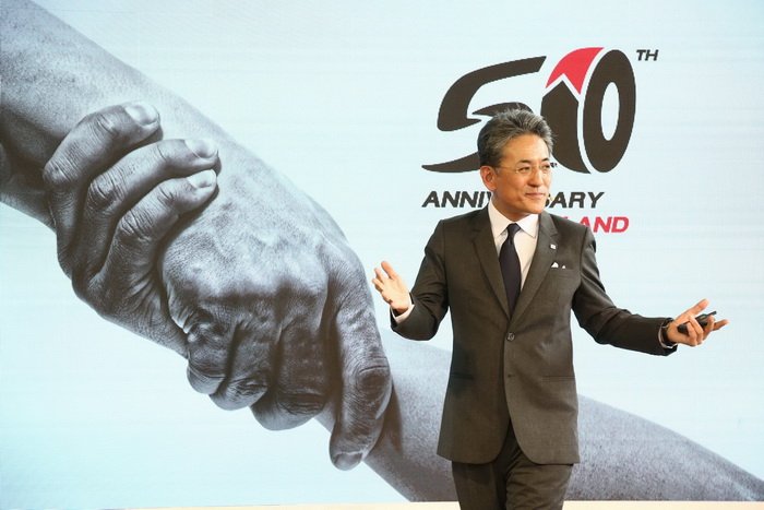 มร. ฮิเดยูกิ ทาเคดะ กรรมการผู้จัดการ บริษัท ไทยบริดจสโตน จำกัด กล่าวว่า “ บริดจสโตน มีความสัมพันธ์ที่ดีกับพนักงาน ตัวแทนจำหน่ายและพันธมิตรทางธุรกิจ ซึ่งล้วนแล้วเป็นส่วนสำคัญที่ช่วยสนับสนุนให้ธุรกิจประสบความสำเร็จตลอดมา ปัจจุบันในประเทศไทยบริดจสโตนมีบริษัทในเครือ 15 แห่ง ดำเนินธุรกิจแบบครบวงจรครอบคลุมตั้งแต่ ต้นน้ำ (Upstream) กลางน้ำ (Midstream) และปลายน้ำ (Downstream) พร้อมคาดการณ์รายได้ในปี 2562 ปัจจัยหลักที่จะสนับสนุนให้บริดจสโตนมีรายได้เติบโตตามเป้าหมาย คือภาคอุตสาหกรรมรถยนต์และชิ้นส่วนรถยนต์ ทั้งการผลิต การจำหน่ายในประเทศและส่งออกไปยังต่างประเทศ ที่คาดการณ์ว่าจะโตขึ้น 4-5% พร้อมตั้งเป้าเดินเครื่องการผลิต 47,000 เส้น/วัน พร้อมการสนับสนุนยางพาราจากเกษตรกรไทย 120,000 ตัน ในปี 2562
