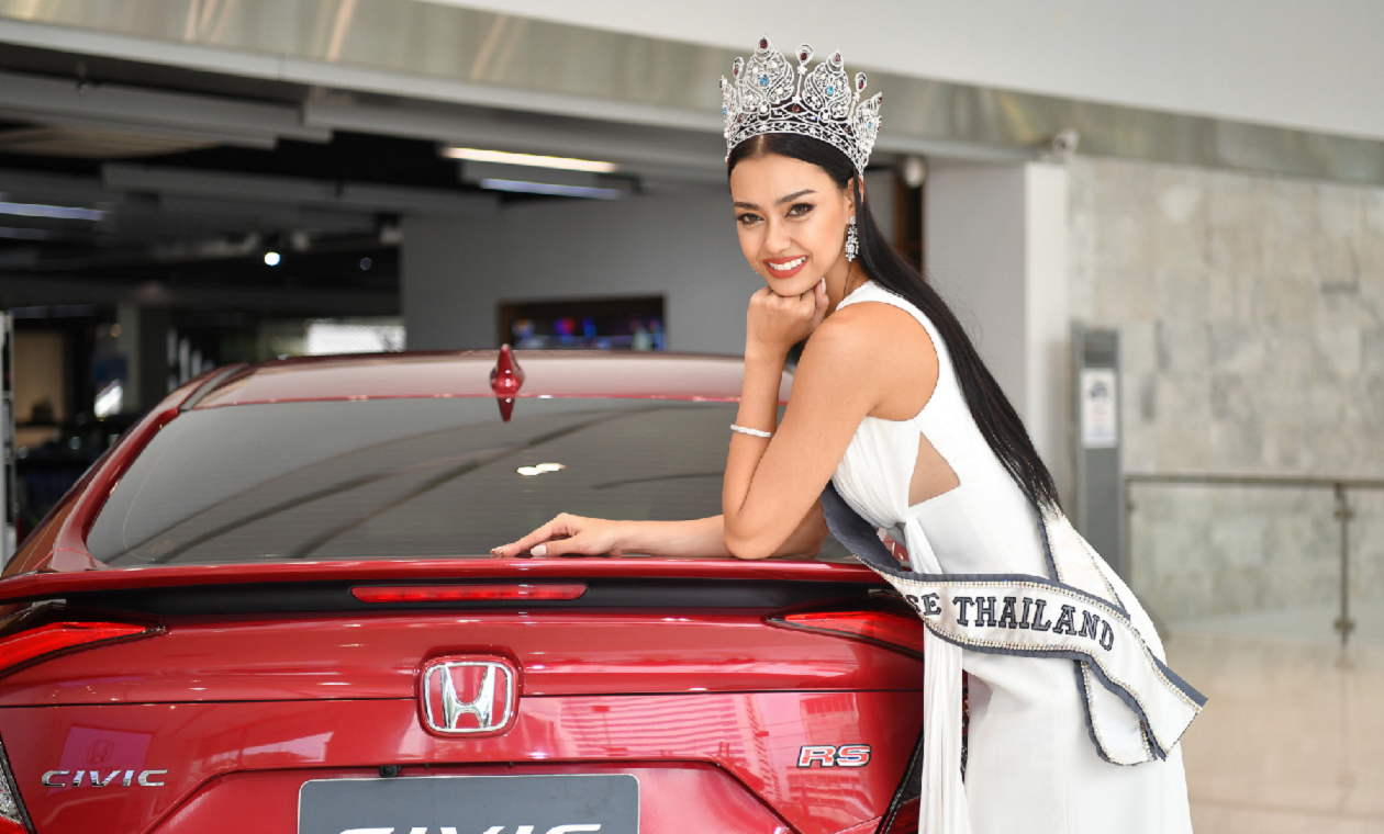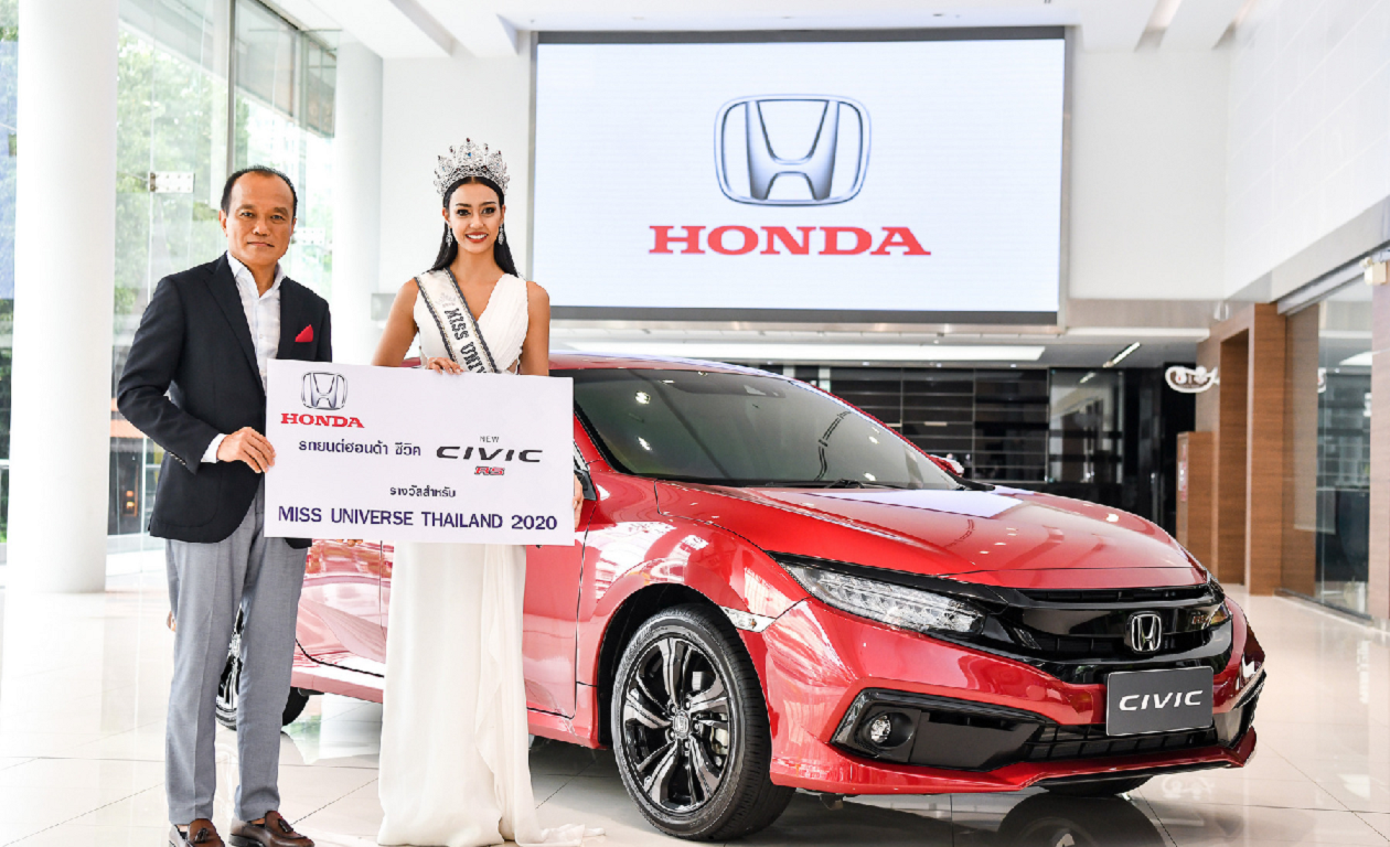 โดยเมื่อเร็ว ๆ นี้ ณ โชว์รูมและศูนย์บริการฮอนด้า สาขาถนนศรีอยุธยา พิทักษ์ พฤทธิสาริกร (ซ้าย) ประธานเจ้าหน้าที่บริหารปฏิบัติการ บริษัท ฮอนด้า ออโตโมบิล (ประเทศไทย) จำกัด ได้มอบรถยนต์ ฮอนด้า ซีวิค รุ่น TURBO RS สีใหม่ สีแดงอิกไนต์ มูลค่า 1,219,000 บาท ให้แก่ อแมนด้า ชาลิสา ออบดัม (ขวา) มิสยูนิเวิร์สไทยแลนด์ 2020 โดย ฮอนด้า ซีวิค เป็นยนตรกรรมสปอร์ตพรีเมียมซีดาน มาพร้อมดีไซน์โฉบเฉี่ยว ที่สามารถสะท้อนตัวตนของคนรุ่นใหม่ อย่างน้องอแมนด้าได้อย่างชัดเจน อีกทั้งตอบโจทย์ไลฟ์สไตล์และการใช้งานได้อย่างลงตัว