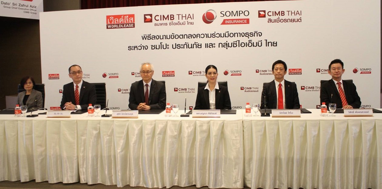 ซมโปะ ประกันภัย (ประเทศไทย) (SOMPO) ยกระดับความสัมพันธ์ครั้งสำคัญแบบ Exclusive Partnership ระยะยาว กับกลุ่มซีไอเอ็มบีไทย อันประกอบด้วย ธนาคาร ซีไอเอ็มบีไทย จำกัด (มหาชน) (CIMBT), บริษัท ซีไอเอ็มบี ไทย ออโต้ จํากัด (CIMB THAI AUTO) และ บริษัท เวิลด์ลีส จํากัด (Worldlease) เสิร์ฟผลิตภัณฑ์ประกันวินาศภัยครบ 360 องศา ตอบโจทย์ครอบคลุมทุกความต้องการด้านประกันภัยให้ลูกค้า