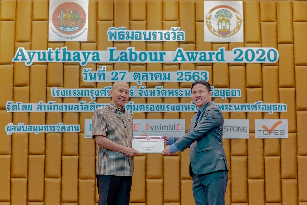 จากภาพ เมื่อเร็วๆ นี้ คุณวันชัย ลี้นะวัฒนา ประธานเจ้าหน้าที่บริหาร บริษัท เอช เซม มอเตอร์ จำกัด (ขวามือ) เข้ารับรางวัล Ayutthaya Labour Award 2020 และเกียรติบัตรการจัดการด้านยาเสพติดในสถานประกอบกิจการตามโครงการโรงงานสีขาว ประจำปี 2563 ซึ่งได้ผ่านการคัดเลือกจากสำนักงานสวัสดิการและคุ้มครองแรงงาน จังหวัดพระนครศรีอยุธยา โดยได้รับเกียรติจาก คุณพรพจน์ บัณฑิตยานุรักษ์ รองผู้ว่าราชการจังหวัดพระนครศรีอยุธยา (ซ้ายมือ) เป็นผู้มอบรางวัล ณ ห้องแกรนด์บอลรูม โรงแรมกรุงศรีริเวอร์ จังหวัดพระนครศรีอยุธยา