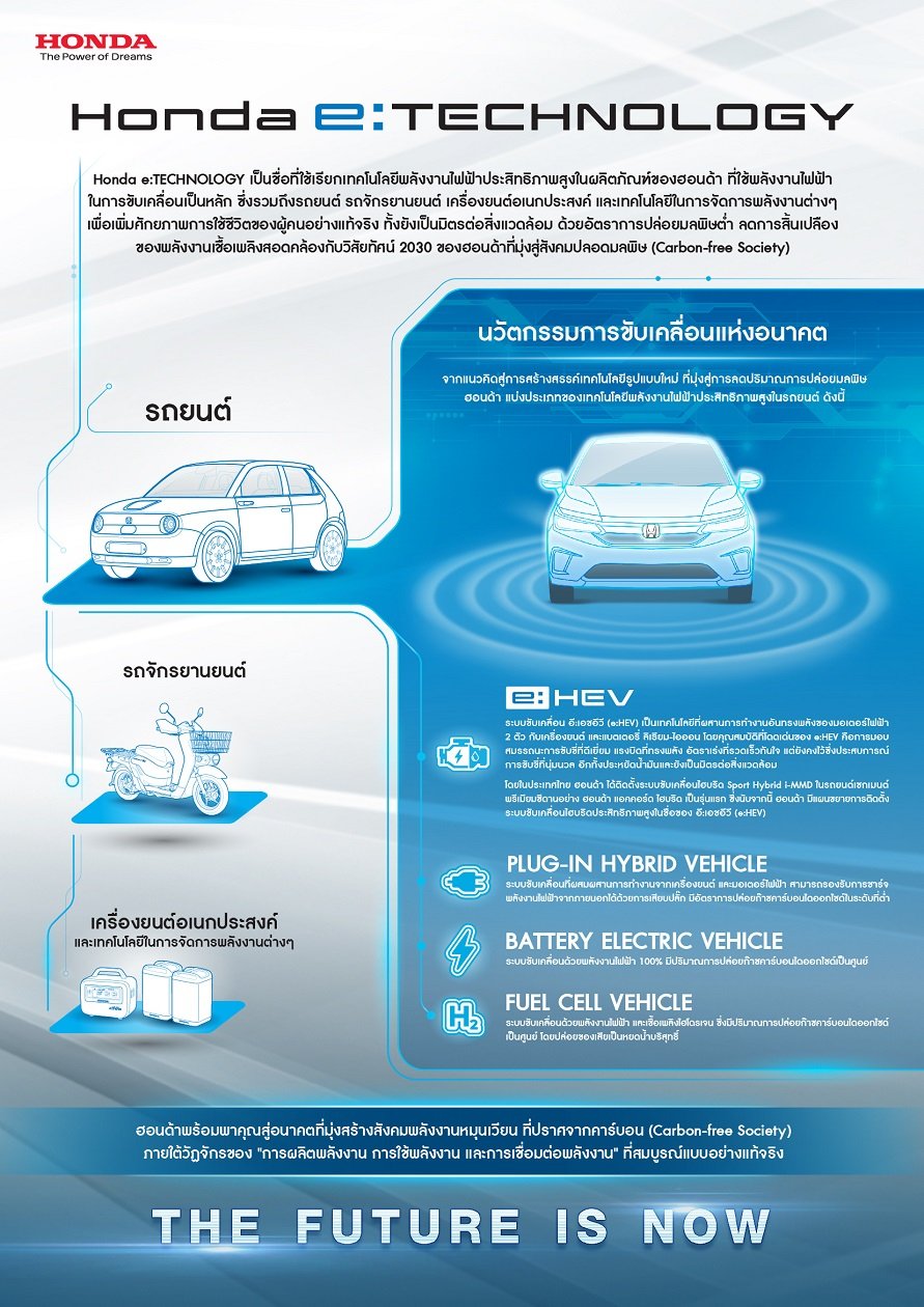 ต่อสิ่งแวดล้อมด้วยอัตราการปล่อยมลพิษที่ต่ำ ลดการสิ้นเปลืองของพลังงาน และนับจากนี้ ฮอนด้า พร้อมที่จะสื่อสารถึงเทคโนโลยีพลังงานไฟฟ้าประสิทธิภาพสูงอย่างเป็นทางการ ภายใต้ชื่อ e:TECHNOLOGY