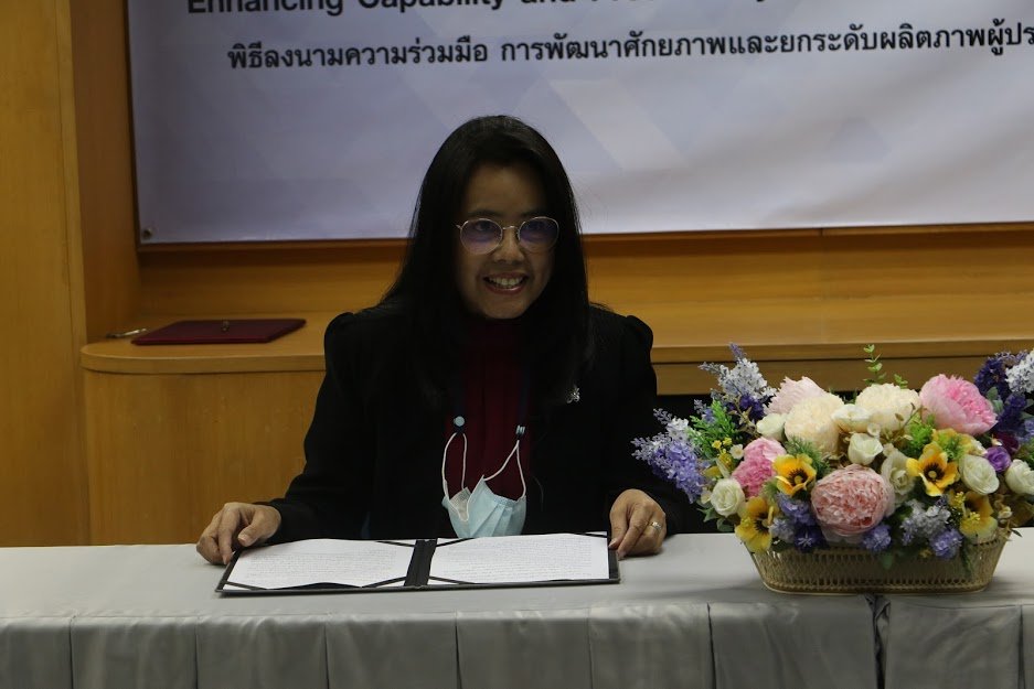 นางปวีณา นันทิกุลวาณิช ผู้ช่วยกรรมการผู้จัดการใหญ่ บริษัท โตโยต้า มอเตอร์ ประเทศไทย จำกัด พร้อมด้วย นายอธิศานต์ วายุภาพ ผู้อำนวยการสถาบันเพิ่มผลผลิตแห่งชาติ ร่วมพิธีลงนามบันทึกข้อตกลงความร่วมมือระหว่าง 2 หน่วยงาน เพื่อพัฒนาหลักสูตรการอบรมและให้คำปรึกษา “การพัฒนาศักยภาพและยกระดับผลิตภาพผู้ประกอบการไทยสู่อุตสาหกรรม 4.0” เมื่อวันพฤหัสบดีที่ 11 กุมภาพันธ์ 2564 ณ อาคารยาคูลท์ ชั้น 12 สถาบันเพิ่มผลผลิตแห่งชาติ
