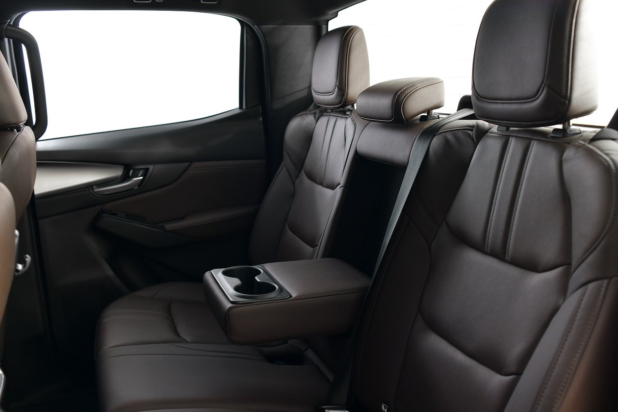 ในช่วงแรกผมได้ลองเป็นผู้โดยสารทั้งเบาะหน้าและเบาะหลัง รู้สึกได้ถึงการปรับเซทช่วงล่างที่เน้นความนุ่มนวลเพิ่มมากขึ้นกว่ารุ่นที่แล้ว ให้ความสำคัญกับการนั่งโดยสารมากกว่าจะใช้บรรทุกของหนัก การนั่งจึงมีความสะดวกสบายเพิ่มมากขึ้น ภายในห้องโดยสารมีความหรูหรา สวยงาม ราวกับนั่งโดยสารอยู่ใน รถเอสยูวีมากกว่าจะเป็นพิคอัพ วัสดุที่ใช้มีคุณภาพดี ความกว้างขวางมีมาให้อย่างเหลือเฟือจากตัวรถที่มีขนาดใหญ่ อุปกรณ์ทันสมัยต่างๆ ติดตั้งมาให้ครบครัน ไม่ว่าจะเป็นระบบ Infotainment ที่เชื่อมต่อได้ทั้ง แอนดรอยด์ และ แอพเพิล แบบไร้สายผ่าน Wifi มาพร้อมลำโพง 8 ตำแหน่ง พวงมาลัยปรับได้ 4 ทิศทาง เบาะผู้ขับขี่ปรับด้วยไฟฟ้าได้ 8 ทิศทางพร้อมระบบดันหลัง ระบบแอร์ปรับอากาศแบบแยกอุณหภูมิ ซ้าย-ขวา ตามความต้องการ ระบบเสริมความปลอดภัยทั้งแอคทีฟและพาสซีฟ เซฟตี้ มีมาให้ครบเช่นกัน