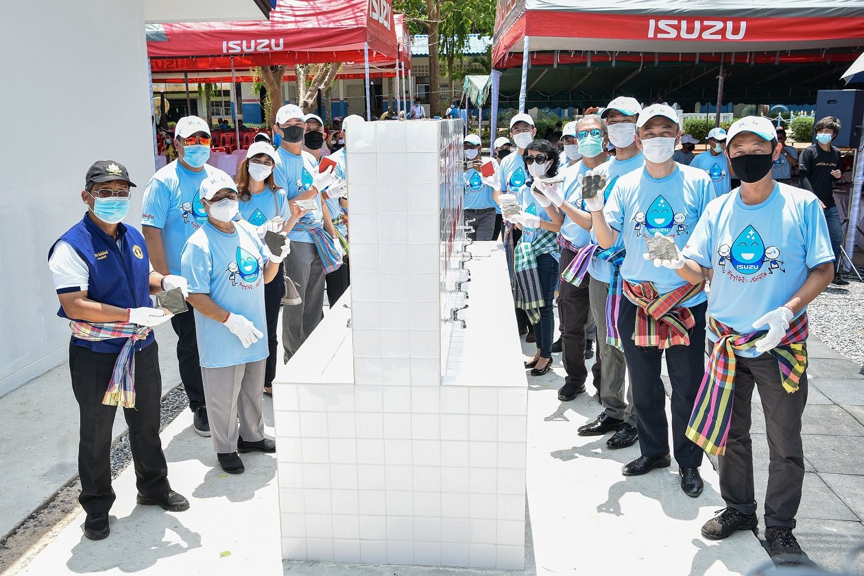 ผู้บริหารจากกลุ่มอีซูซุ ผู้จำหน่ายอีซูซุ และผู้แทนจากกระทรวงฯ ร่วมทาสีอาคารน้ำดื่ม