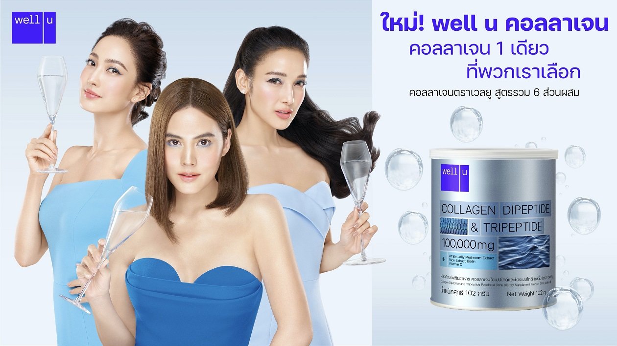 1. well u คอลลาเจน คอลลาเจนระดับพรีเมียมที่มีประสิทธิภาพและนวัตกรรมที่เหนือกว่าด้วยส่วนประกอบที่สำคัญถึง 6 ชนิด ได้แก่ 1. คอลลาเจนไดเปปไทด์ 2. คอลลาเจนไตรเปปไทด์ 3. วิตามินซี 4. สารสกัดข้าว 5. สารสกัดเห็ดหูหนูขาว และ 6. ไบโอทิน ซึ่งช่วยดูแลครบตั้งแต่ผม ผิวพรรณ เล็บ กระดูกและข้อ เพื่อให้สุขภาพดีจากภายใน พร้อมดึง 3 นักแสดงเป็นพรีเซนเตอร์พร้อมกัน ได้แก่ เจนี่ อัลภาชน์ ณ ป้อมเพชร แต้ว-ณฐพร เตมีรักษ์ และ แพท-ณปภา ตันตระกูล ซึ่งเป็นตัวแทนของพรีเมียมคอลลาเจนที่มีส่วนประกอบสำคัญหลายอย่างเปรียบเสมือนดรีมทีมในการดูแลสุขภาพ เพื่อสื่อสารไปยังกลุ่มเป้าหมายครบทุกช่องทางทั้งสื่อนอกบ้าน, สื่อออนแอร์ และสื่อออนไลน์ วางจำหน่ายทั่วประเทศ ผ่าน 3 ช่องทางหลัก คือ Exclusive Distribution Network (EDN) หรือตัวแทนจำหน่าย, Exclusive Modern Trade ทีWatsons และออนไลน์ ภายใต้คอนเซปต์ “คอลลาเจน 1 เดียวที่เราเลือก เพื่อยู...ในทุกวัน”