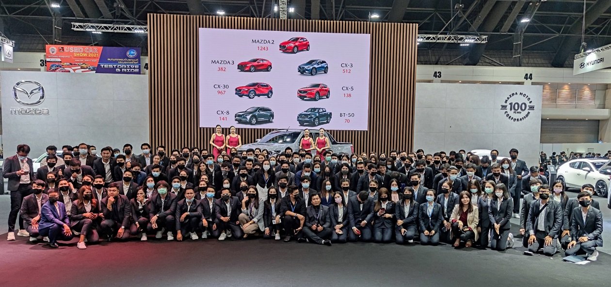 นายชาญชัย ตระการอุดมสุข ประธานบริหาร บริษัท มาสด้า เซลส์ (ประเทศไทย) จำกัด กล่าวว่า ภาพรวมบูธมาสด้าในงานมอเตอร์โชว์ครั้งนี้เรียกได้ว่าค่อนข้างคึกคัก ถึงแม้ว่าเราจะไม่มีรถยนต์รุ่นใหม่ที่นำมาเปิดตัวภายในงานฯ แต่ก็มีรถยนต์ที่เป็นแม็กเน็ตดึงดูดใจให้คนหลั่งไหล่เข้ามาที่บูธมาสด้าอย่างไม่ขาดสาย ไม่ว่าจะเป็นรถปิกอัพ ALL-NEW MAZDA BT-50 รุ่นที่มาพร้อมชุดแต่ง KENSHO หรือทัพรถยนต์นั่งและรถอเนกประสงค์เอสยูวีตระกูล CX-Series ในสีเทา โพลี เมทัล เกรย์ ที่นำมาเนรมิตโฉมใหม่ด้วยชุดแต่งพิเศษ รวมถึงจัดแคมเปญที่เรียกได้ว่าแรงและคุ้มค่ามากที่สุดแห่งปี จึงเป็นปัจจัยสนับสนุนกระตุ้นให้ลูกค้าตัดสินใจจองซื้อรถภายในงานเป็นจำนวนมาก ซึ่งถ้าเทียบกับงานมอเตอร์โชว์ปีที่ผ่านมาแล้ว เรียกได้ว่ายอดจองสูงขึ้นกว่าเดิมถึง 46% (จาก 2,365 คัน ในปี 2563)