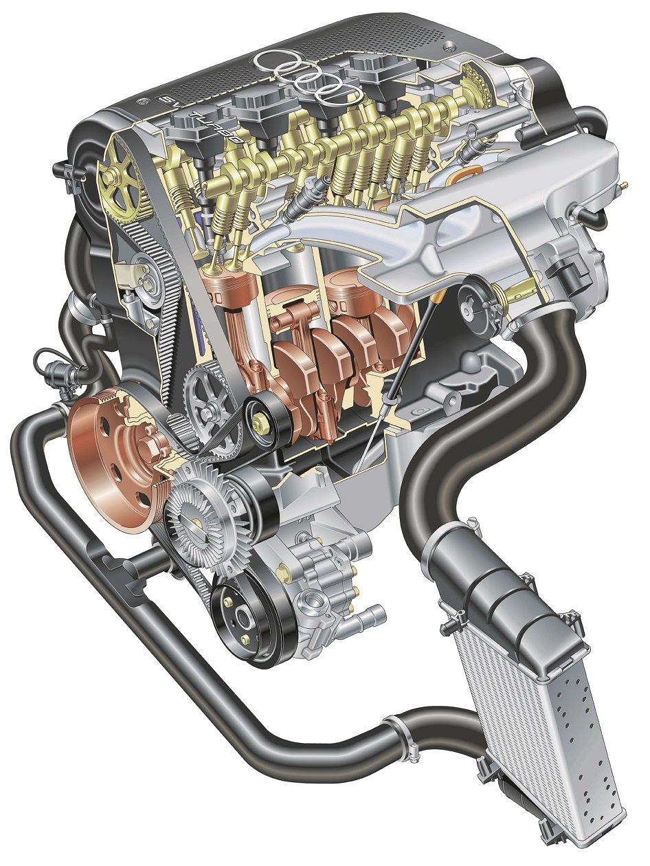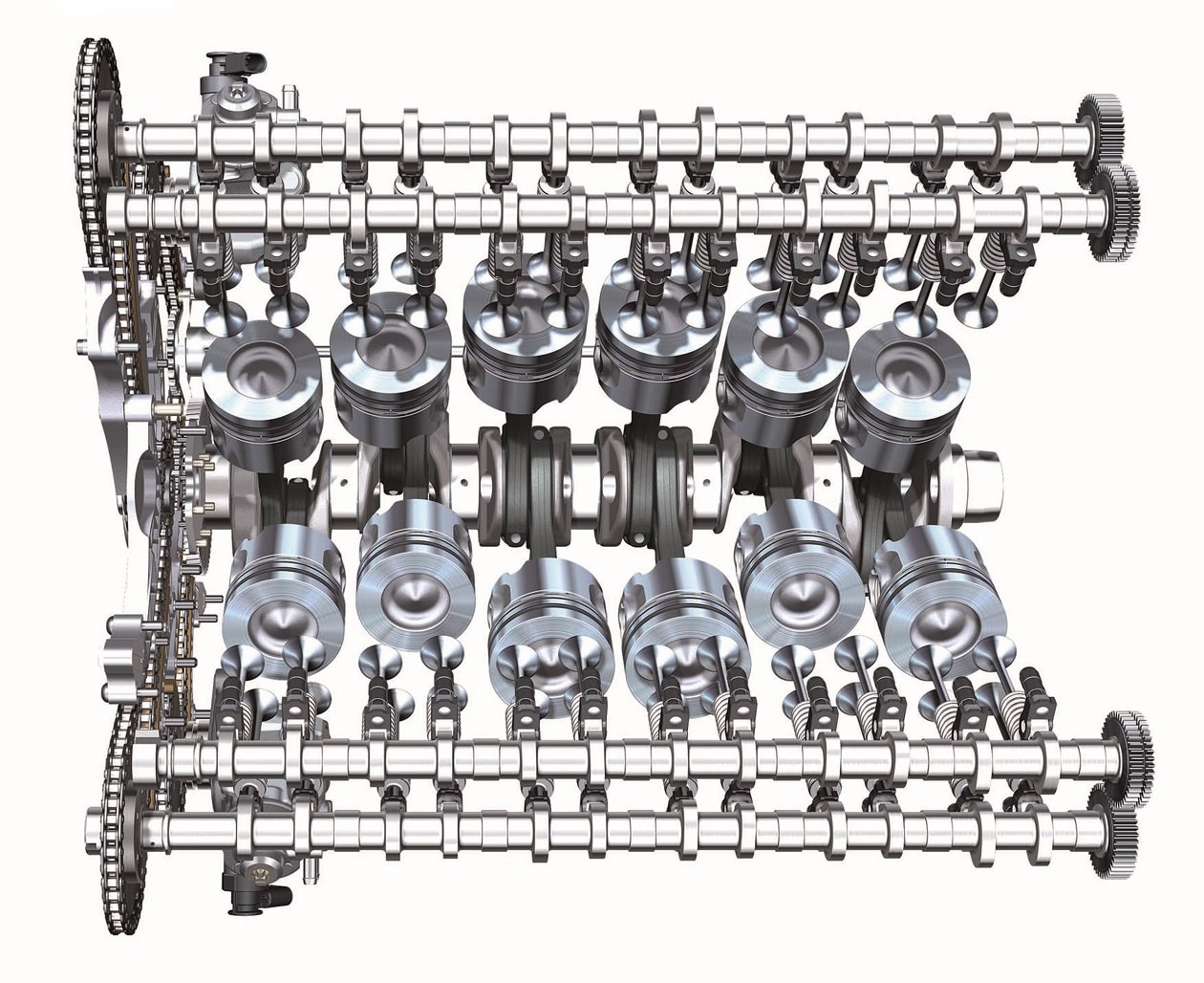 V – Engines กระบอกสูบจะถูกแบ่งออกเป็น 2 แถว (Bank) หากเป็นเครื่องยนต์ V6 สูบ ก็จะมีแถวละ 3 สูบ โดยกระบอกสูบทั้ง 2 แถว จะวางทำมุมระหว่าง 15 ถึง 120 องศา นิยมใช้ที่ 60 และ 90 องศา ในอดีตเครื่องยนต์ที่จัดวางกระบอกสูบในลักษณะนี้ จะมีจำนวนกระบอกสูบเป็นเลขคู่ ตั้งแต่ 2 ถึง 16 สูบ (หรือมากกว่านั้น) โดยเฉพาะ เครื่อง V6 และ V8 จะได้รับความนิยมเป็นพิเศษ แต่หลายปีที่ผ่านมา ต้องอัพเดททฤษฎีในตำรากันยกใหญ่ เพราะ VW ได้นำเครื่องยนต์ V5 (มี 5 สูบ) มาใช้กับรถในสังกัด แถวหนึ่งใช้ 3 สูบ ส่วนอีกแถวหนึ่งใช้ 2 สูบ จุดได้เปรียบคือการลดขนาดของเครื่องยนต์ลงได้อีก ดูผิวเผินการทำงานของเครื่องยนต์ V5 อาจสมดุลสู่เครื่อง V เลขคู่ไม่ได้ ทางผู้ออกแบบแก้ปัญหาด้วยการใช้ ‘เพลาสมดุล’ (Balance Shafts) หมุนสวนทิศทางกับการหมุนของเพลาข้อเหวี่ยง เพื่อหักล้างแรงสั่นสะเทือนที่เกิดขึ้น