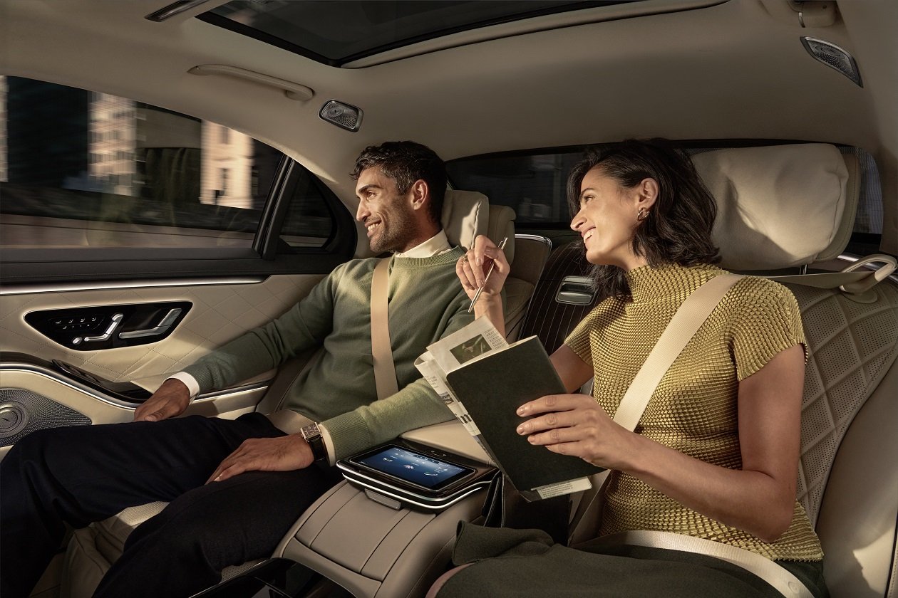 ระบบมัลติมีเดีย MBUX7 (Mercedes-Benz User Experience) เจเนอเรชันใหม่จะช่วยยกระดับประสบการณ์การขับขี่ขึ้นอีกขั้น ทั้งการมี MBUX Interior Assistant ที่จะทำงานอย่างฉับไวในการตอบรับการเคลื่อนไหวร่างกายของผู้โดยสาร โดยระบบจะตรวจจับการเคลื่อนไหวของมือ ศีรษะ และร่างกาย เพื่อแปลความต้องการของผู้ใช้ นำไปสู่การควบคุมฟังก์ชันต่าง ๆ ภายในรถยนต์ เช่น หากยื่นมือขึ้นหรือลงทางกระจกด้านข้าง ไฟอ่านหนังสือจะติดขึ้นหรือดับลงเองโดยอัตโนมัติ ฯลฯ ส่วนระบบ MBUX High-End Rear Seat Entertainment จะทำงานร่วมกับ Rear Tablet หน้าจอระบบสัมผัสขนาด 7 นิ้ว ยกระดับการควบคุมความบันเทิงของผู้โดยสารตอนหลังให้สะดวกสบายมากขึ้น โดยเฉพาะการควบคุมความบันเทิงบนหน้าจอขนาด 11.6 นิ้ว 2 หน้าจอสำหรับผู้โดยสารตอนหลัง โดยภายในห้องโดยสารยังมาพร้อมระบบเสียง Burmester® 3D-Surround พร้อมชุดลำโพง 15 ตัวด้วย