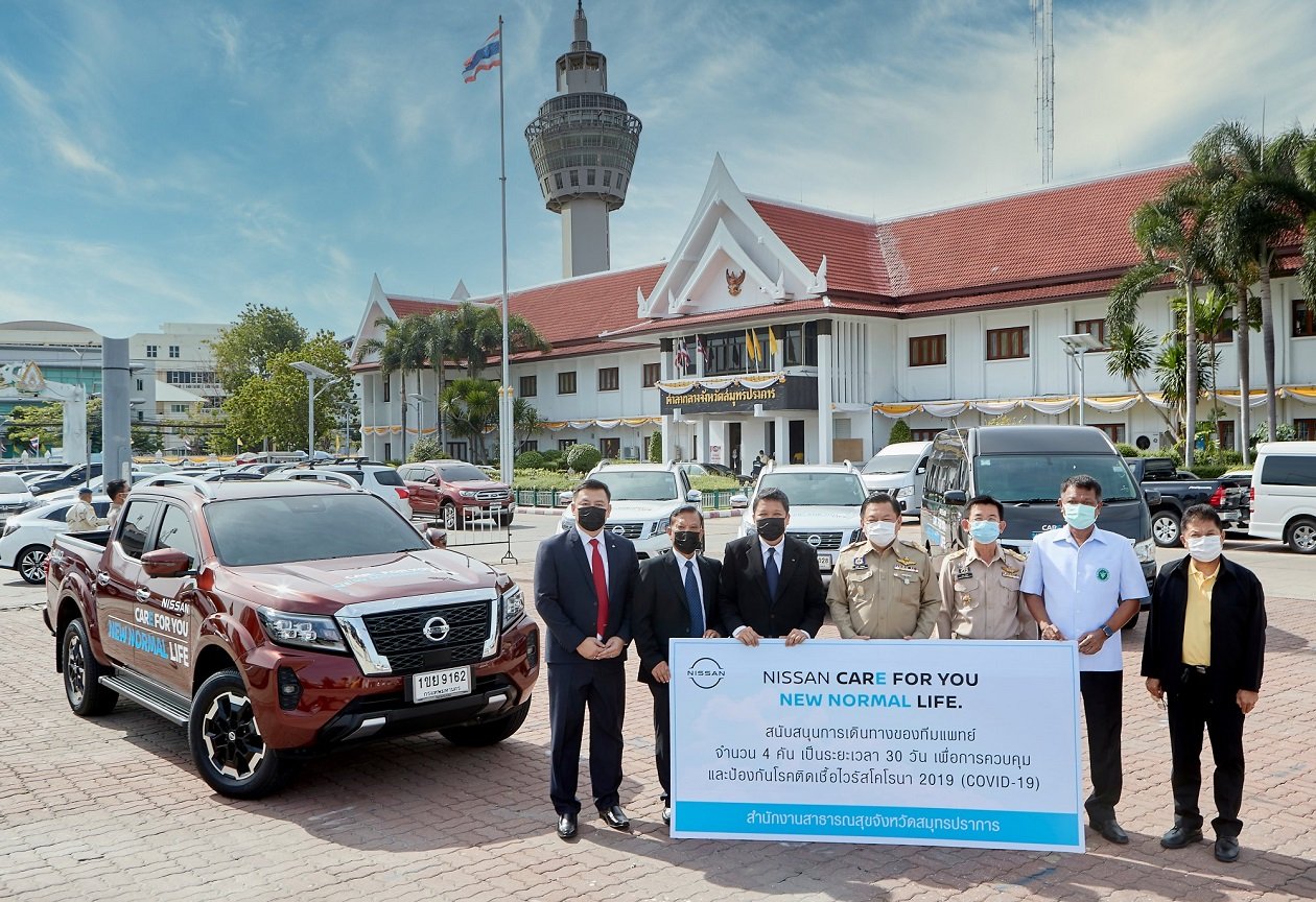 นิสสัน ประเทศไทย ต่อยอดโครงการ “CARE FOR YOU” แทนความห่วงใยจากนิสสัน สู่กิจกรรมเพื่อสังคมภายใต้ชื่อ “ส่งผ่านความห่วงใย ต้านภัยโควิด-19 หรือ Nissan Next Fight” โดยสนับสนุนรถยนต์ที่เหมาะสมกับการทำงานของทีมแพทย์และบุคลากรทางการแพทย์ ได้แก่ รถกระบะ นิสสัน นาวารา จำนวน 3 คัน และรถตู้ นิสสัน บิ๊ก เออร์แวน จำนวน 1 คัน ให้แก่ทีมแพทย์สำนักงานสาธารณสุข จังหวัดสมุทรปราการ เพื่อสนับสนุนการเดินทางของทีมคัดกรองผู้ป่วยเชิงรุก และให้บริการฉีดวัคซีนโควิด-19 ในพื้นที่เสี่ยงต่าง ๆ ทั้งใน จ.สมุทรปราการ และพื้นที่ใกล้เคียง เป็นระยะเวลา 1 เดือน