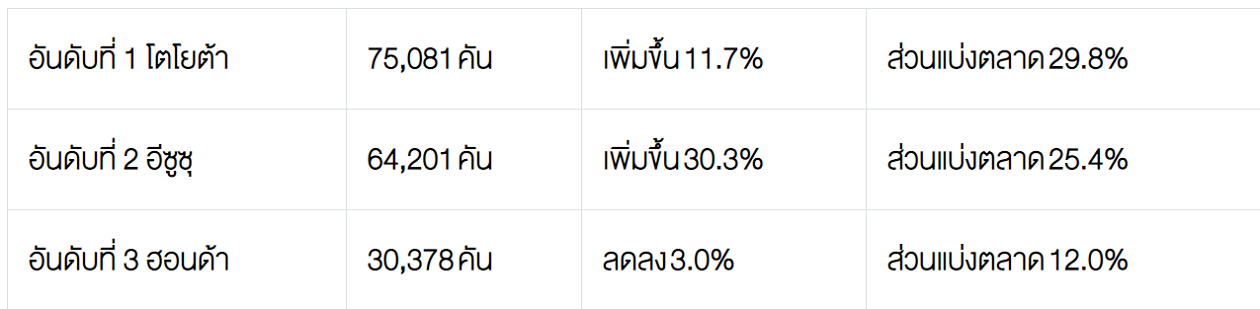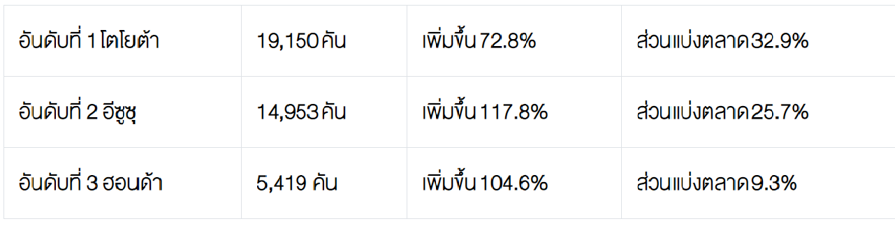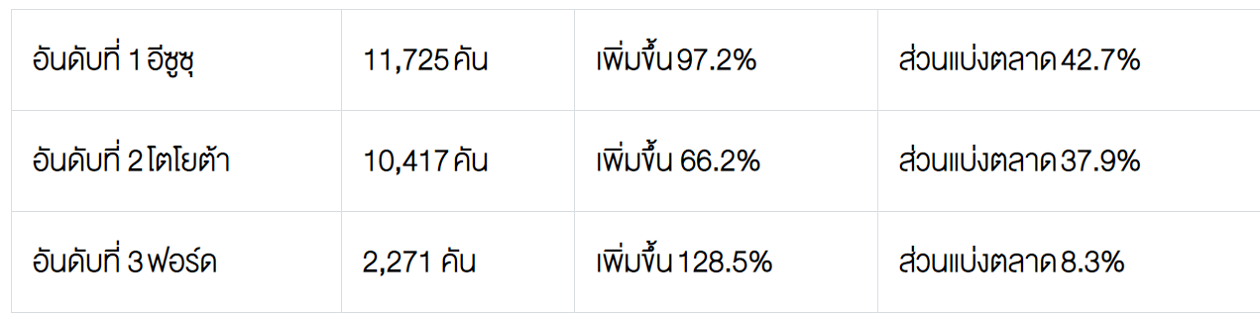 5. ตลาดรถกระบะ Pure Pick up ปริมาณการขาย 27,458 คัน เพิ่มขึ้น 81.1%