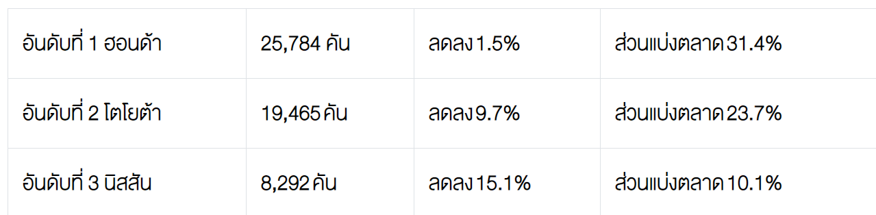 2. ตลาดรถยนต์นั่ง ปริมาณการขาย 82,244 คัน ลดลง 5.7%