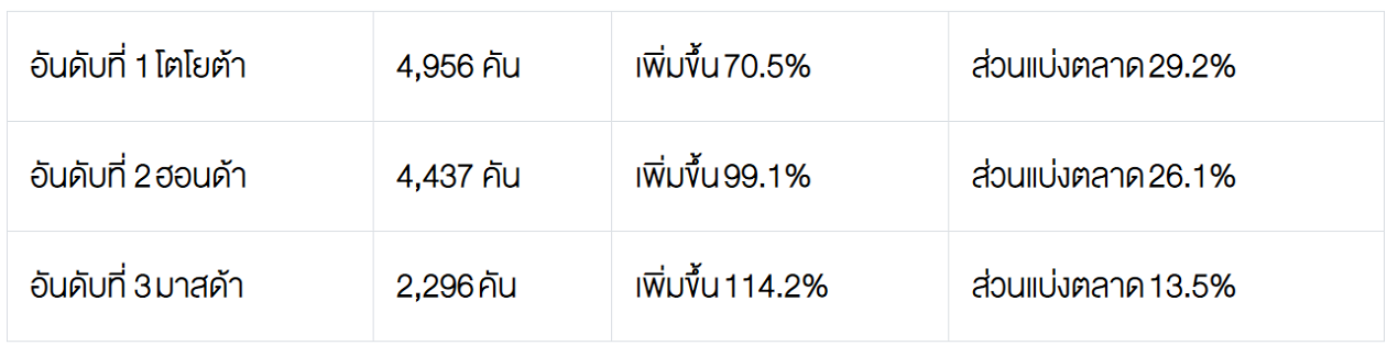 2. ตลาดรถยนต์นั่ง ปริมาณการขาย 16,988 คัน เพิ่มขึ้น 92.4%