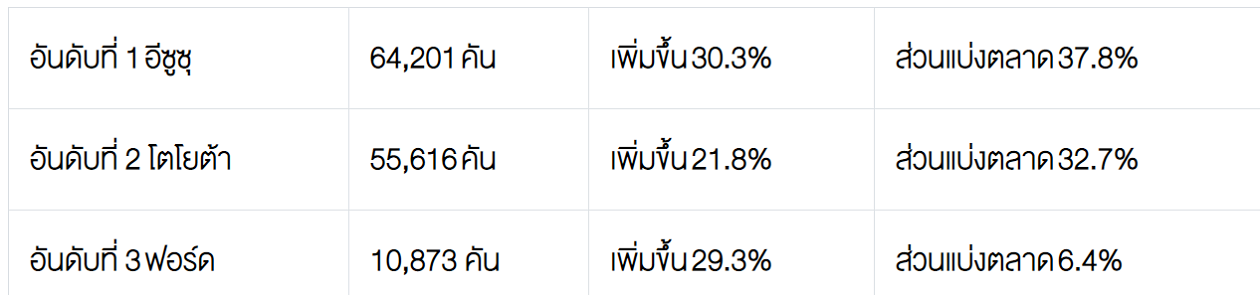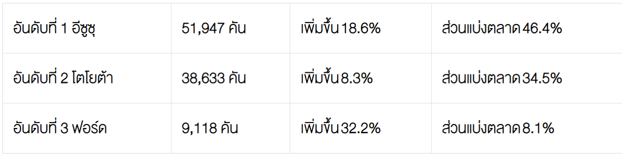 5. ตลาดรถกระบะ Pure Pick up ปริมาณการขาย 111,896 คัน เพิ่มขึ้น 9.4%