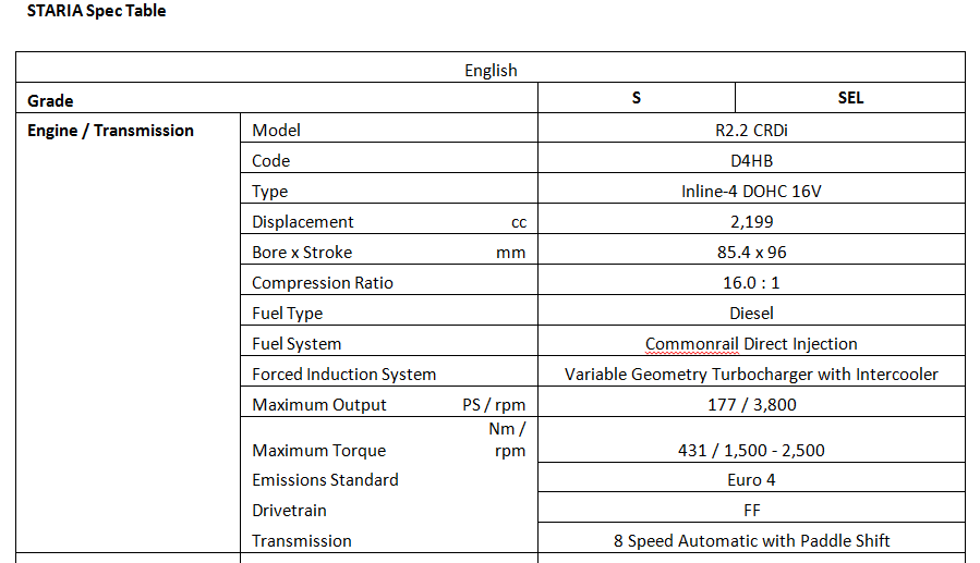 สตาร์เรียมาพร้อมกับเครื่องยนต์ดีเซลขนาด 2.2 ลิตร จับคู่กับเกียร์อัตโนมัติ 8 สปีด มอบกำลังสูงสุดที่ 177 แรงม้า แรงบิดที่ 431 นิวตันเมตร ทรงพลัง นอกจากนี้ยังได้มีการปรับปรุงระบบระบายความร้อนด้วยอินเตอร์คูลเลอร์และกังหันเทอร์โบชาร์จเพื่อเพิ่มประสิทธิภาพการทำงานของแรงบิดในรอบเครื่องยนต์ต่ำ