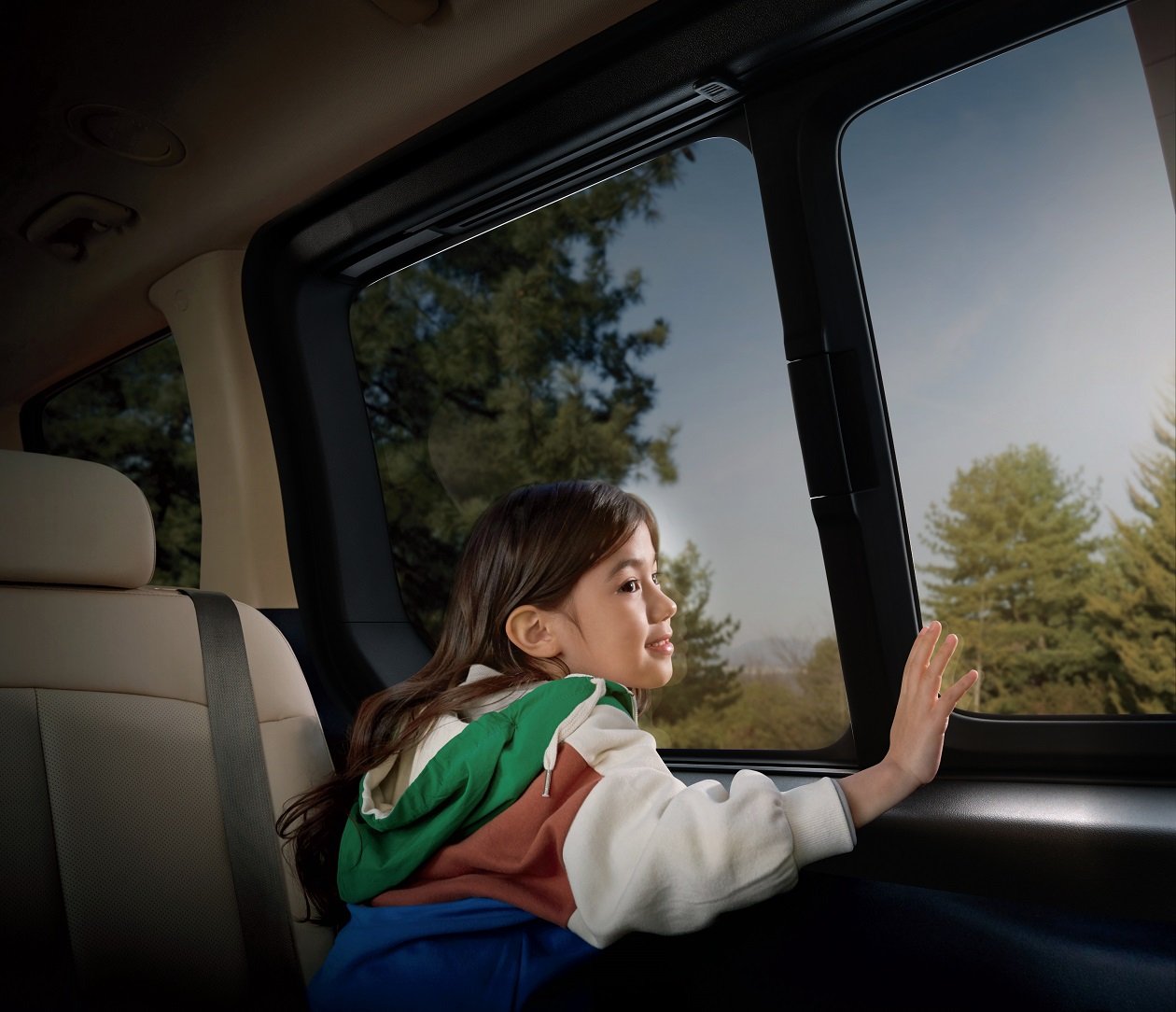 นอกจากนี้ การออกแบบภายในที่ให้ความสำคัญกับทัศนวิสัยของคนขับและความสะดวกสบายของผู้โดยสาร ขณะเดียวกันก็ยังคงคุณสมบัติของรถยนต์อเนกประสงค์ไว้อย่างครบถ้วน การออกแบบ beltline ที่ต่ำกระจกแบบพาโนรามิค ทำให้รู้สึกเปิดกว้างขณะโดยสารอยู่ในรถ
