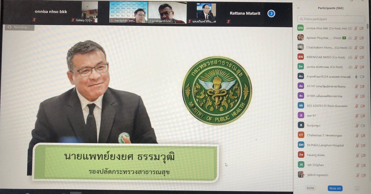 สำนักงานหลักประกันสุขภาพแห่งชาติ (สปสช.) จัดประชุมชี้แจงระบบบริการและการเบิกจ่ายในระบบการดูแลผู้ป่วยโควิดกลุ่มสีเขียวที่บ้าน (Home Isolation : HI) คลินิกชุมชนอบอุ่น และศูนย์บริการสาธารณสุข กทม. ผ่านระบบ Zoom Meeting เพื่อผนึกกำลังหน่วยบริการระดับปฐมภูมิร่วมดูแลผู้ติดเชื้อโควิด-19 ในพื้นที่ กทม. และปริมณฑลที่ยังเข้าไม่ถึงระบบบริการ ผ่านระบบ HI โดยความร่วมมือ กรมการแพทย์ กรมสนับสนุนบริการสุขภาพ กระทรวงสาธารณสุข สำนักอนามัย กรุงเทพมหานคร
