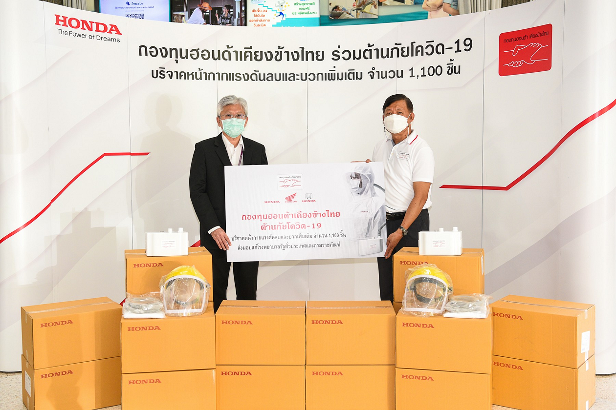 ท่ามกลางสถานการณ์การแพร่ระบาดของเชื้อโควิด-19 ที่กระจายวงกว้าง กองทุนฮอนด้าเคียงข้างไทย ภายใต้มูลนิธิฮอนด้าประเทศไทย ร่วมกับกลุ่มบริษัทฮอนด้าในประเทศไทย ขอเป็นอีกหนึ่งพลังในการส่งมอบความช่วยเหลือเพื่อเสริมเกราะป้องกันและสนับสนุนการทำงานให้บุคลากรทางการแพทย์ทุกท่านที่ปฏิบัติหน้าที่อย่างหนัก และช่วยป้องกันการแพร่ระบาดเชื้อโควิด-19 ในผู้ป่วย ด้วยการส่งมอบนวัตกรรมหน้ากากแรงดันลบและแรงดันบวกที่ผลิตโดยทีมวิศวกรฮอนด้าจิตอาสา เพิ่มเติมจำนวน 1,100 ชิ้น รวมมูลค่า 42 ล้านบาท ให้แก่กระทรวงสาธารณสุขและโรงพยาบาลรามาธิบดี เพื่อจัดสรรตามความต้องการและกระจายต่อไปยังโรงพยาบาลรัฐ จำนวน 114 แห่งทั่วประเทศ รวมถึงกรมราชทัณฑ์ เพื่อกระจายต่อไปยังทัณฑสถานโรงพยาบาลราชทัณฑ์ โรงพยาบาลเรือนจำกลางบางขวาง และโรงพยาบาลเรือนจำกลางสมุทรปราการ