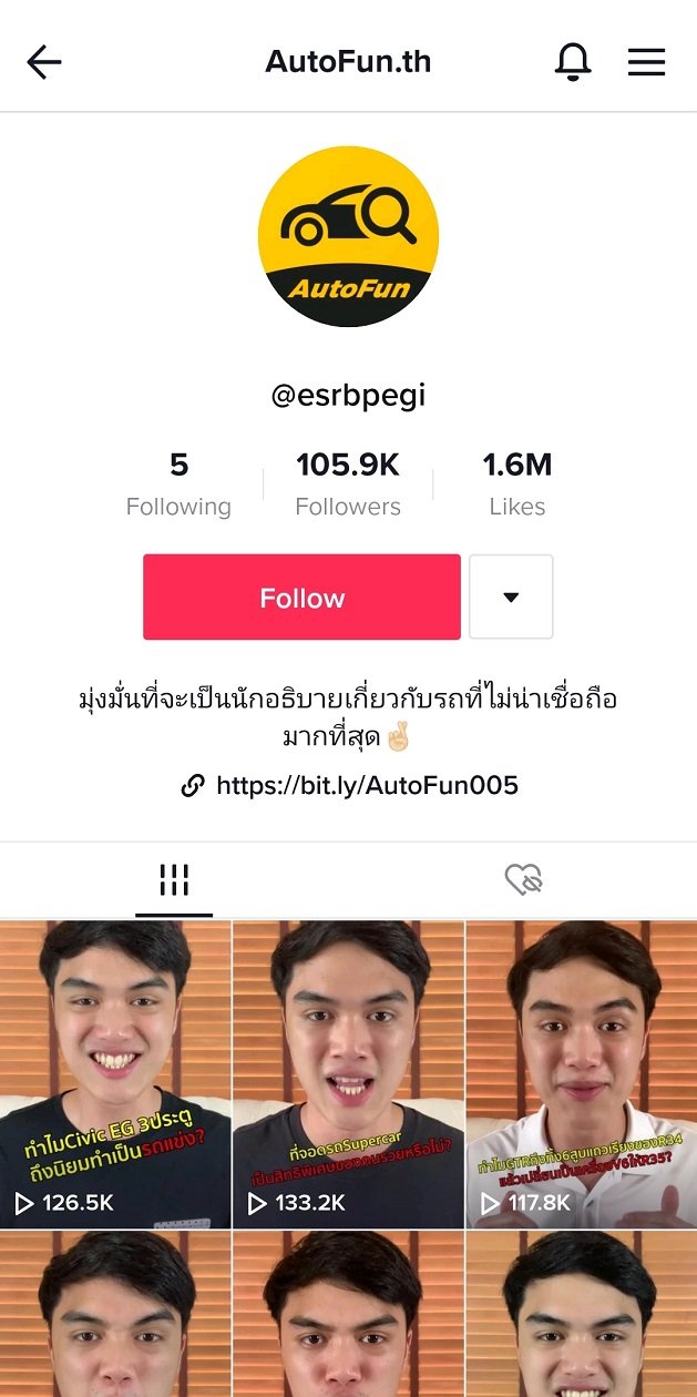 “AutoFun มีจุดแข็งด้านเทคโนโลยีของโครงสร้างข้อมูลเป็นตัวช่วยหลัก เห็นได้จากในรอบ 1 ปี เรานำเสนอข้อมูลของรถยนต์ 38 ยี่ห้อ 274 รุ่น 1,296 รุ่นย่อย เผยแพร่รูปรถจำนวนกว่า 15,719 ภาพ และมีเนื้อหาที่มีผู้ชมเข้าถึงมากกว่า 270,864 ชิ้น แม้เนื้อหาในรูปแบบตัวอักษรจะมีความสำคัญ แต่ในโลกปัจจุบันที่มีการเปลี่ยนแปลงตลอดเวลาเรามองกระแสที่จะเกิดขึ้นในอนาคต ด้วยการเพิ่มจำนวนการผลิตคลิปวิดีโอ โดยคลิปที่มีความยาวจะเผยแพร่ผ่าน YouTube และคลิปสั้นเผยแพร่ผ่าน Tiktok เพื่อเพิ่มสีสัน ความสนุกสนาน ให้สอดคล้องกับพฤติกรรมของผู้ใช้ยานยนต์และรองรับกระแสคนรุ่นใหม่ โดยผู้ชมสามารถติดตามเราทาง Tiktok ได้ 3 ช่องทาง คือ @autofun422 @pickupbrothers และ @esrbpegi เรามีแฟนคลับมากกว่า 7 แสนคน และผู้ชมเฉลี่ยสูงกว่า 3 แสน ในปัจจุบัน”