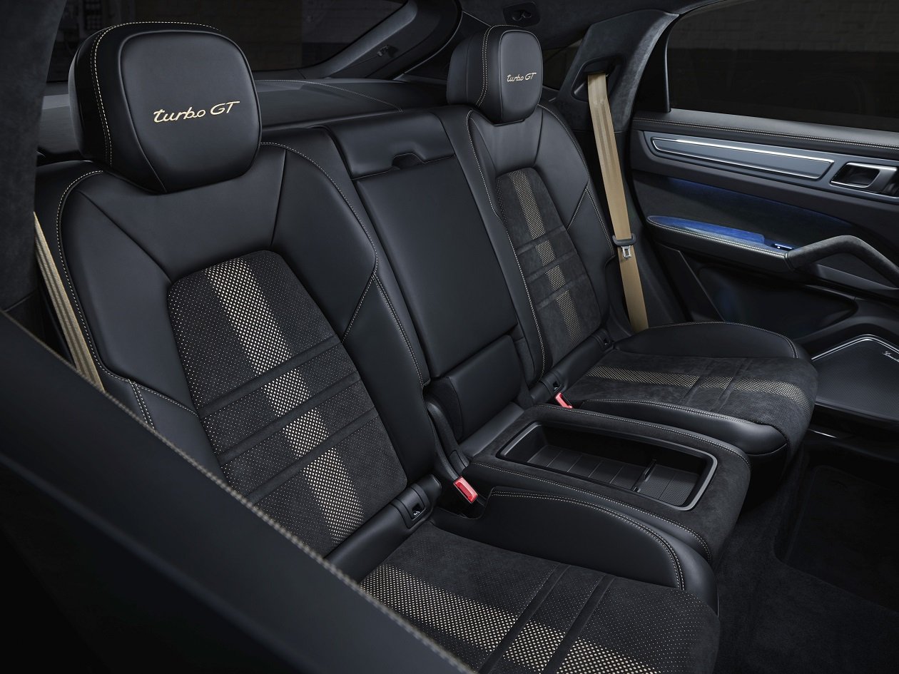 ไฮไลท์ของห้องโดยสาร อยู่ที่งานตกแต่งซึ่งเน้นหนักไปที่วัสดุ Alcantara เบาะนั่งสปอร์ตคู่หน้า ปรับระดับด้วยไฟฟ้า 8 ทิศทางและเบาะหลังสปอร์ตแบบแยกอิสระ 2 ที่นั่งติดตั้งมาเป็นมาตรฐาน พื้นที่บริเวณกึ่งกลางเบาะ หุ้มด้วยวัสดุ Alcantara ในทุกตำแหน่ง เฉพาะรุ่น GT เลือกเฉดสีแตกต่างด้วย ชิ้นงานสีทอง Neodyme หรือสีเทา Arctic Grey พร้อมประทับตัวอักษร ‘turbo GT’ ประจำรุ่นลงบนหมอนรองศีรษะ เช่นเดียวกับอุปกรณ์อื่น ๆ ที่มีอยู่ในรถสปอร์ต PORSCHE ทุกคัน พวงมาลัยสปอร์ต Multifunction คาดเส้นสีเหลืองที่ตำแหน่ง 12 นาฬิกา สามารถเลือกรูปแบบการตกแต่งภายในด้วยวัสดุสีดำด้าน ตามรูปแบบของห้องโดยสาร โดยสนนราคาของ Cayenne Turbo GT เริ่มต้นที่ 17.9 ล้านบาท