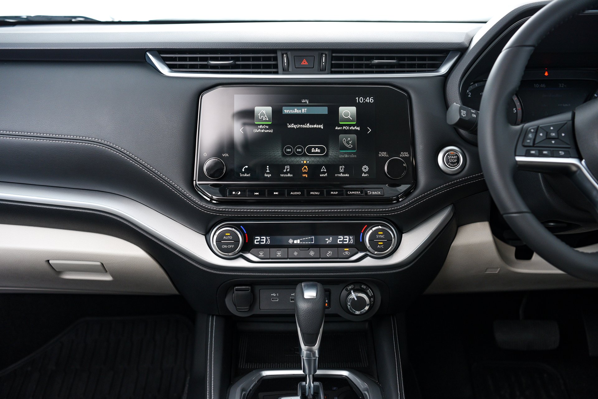 บริเวณคอนโซลกลางติดตั้งชุดจอมัลติมีเดียแบบ 8 เหลี่ยมขนาด 9 นิ้ว แบบทัชสกรีน เชื่อมต่อ Apple Car Play โดยผ่านการเชื่อมต่อ Wiress ส่วน Android Auto ยังต้องเสียบสายอยู่ พร้อมกับนี้ระบบเครื่องเสียงของ New Teara รอบนี้มาพร้อมกับชุดลำโพง BOSE 8 ตัว และแอมป์พลิฟายเออร์(เฉพาะรุ่น VL) ถัดลงมาจะเป็นชุดระบบปรับอากาศแบบ Auto Dual Zone แยกอุณหภูมิระหว่างผู้ขับขี่กับผู้โดยสารตอนหน้าได้(ผู้โดยสารตอนหลังอิงอุณหภูมิข้างคนขับ) กระเถิบลงมาล่างสุดในรุ่น VL จะให้ที่ชาร์จมือถือแบบ Wiress Change มาให้เสร็จสรรพ