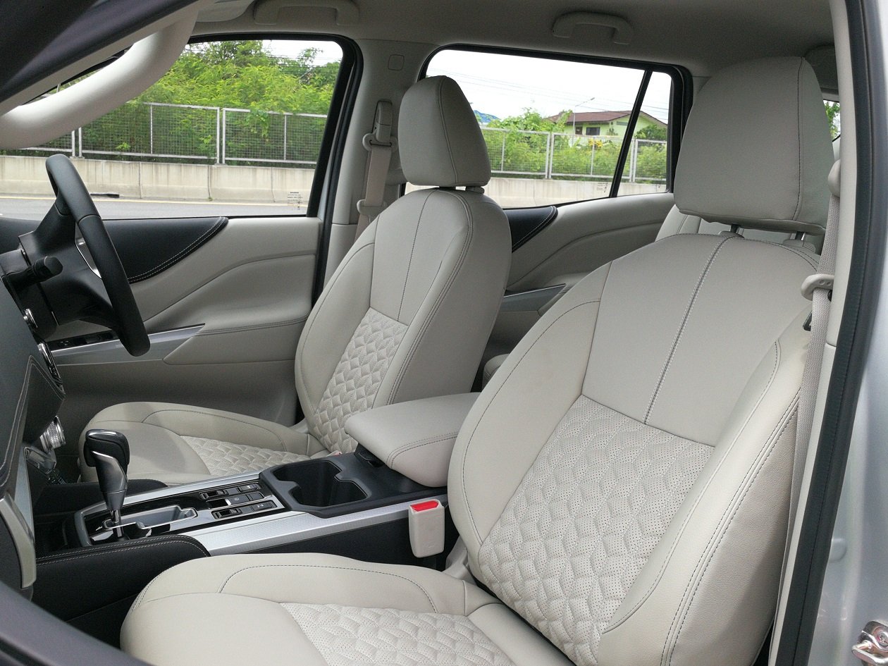 เบาะนั่งคู่หน้ามีการออกแบบใหม่(เหมือนกับ Navara) ทำให้ผู้ขับขี่ และผู้โดยสารตอนหน้ามีความสบายในการเดินทางมากยิ่งขึ้น เบาะผู้ขับเป็นแบบปรับไฟฟ้า 6 ทิศทาง พร้อมดุนหลัง ส่วนผู้โดยสารตอนหน้ายังคงเป็นแบบปรับมือ(คู่แข่งให้ไฟฟ้ามากันหมดแล้ว) ตรงนี้คือ สิงที่ New Teara เสียเปรียบ และอาจทำให้ผู้ที่รอซื้ออาจลังเลอยู่นิดๆ ก็เป็นได้ ส่วนเบาะผู้โดยสารแถว 2 ยังคงเหมือนเดิม แยกพับ 60:40 ปรับเอนพนักพิง(มีพักแขนพร้อมที่วางแก้มเก็บพับได้) และเลื่อนสไลด์เพิ่มเนื้อที่ให้กับผู้โดยสารแถวที่ 3ได้