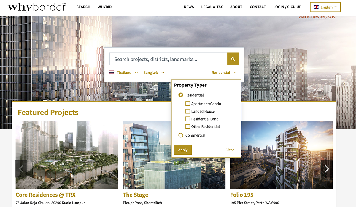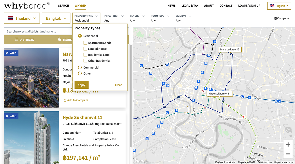 วายบอร์เดอร์ แพลตฟอร์มการซื้อขายอสังหาริมทรัพย์รูปแบบใหม่ มีการใช้งานที่ง่ายและสะดวกสบายมาก สำหรับผู้ซื้อชาวต่างชาติที่ร่วมประมูล จะสามารถซื้ออสังหาฯ ที่ต้องการได้จากที่บ้าน ด้วยการออกแบบที่ตระหนักถึงการศึกษาข้อมูลแบบครบวงจร ตั้งแต่การดูข้อมูลและการเปรียบเทียบโครงการ การค้นหาโซนพักอาศัยที่ต้องการ ไปจนถึงการให้ข้อมูลติดต่อของนักกฎหมายในพื้นที่เพื่อขอคำปรึกษาฟรีได้ในทันทีผ่านระบบการส่งข้อความบนเว็บไซต์ เพื่อสร้างประสบการณ์การซื้ออสังหาฯ ได้อย่างราบรื่น และมอบความมั่นใจให้แก่ผู้ซื้อ หลังจากปิดการประมูล ผู้ร่วมประมูลที่เสนอราคาสูงสุดที่มากกว่าราคาจองของผู้ขายจะได้เป็นเจ้าของอสังหาฯ นั้น สามารถดำเนินการขั้นตอนทางธุรกรรมเสร็จสิ้นได้ภายในระยะเวลาเพียง 2 เดือน โดยการประมูลผ่านวายบิด (Whybid) เป็นครั้งแรก จะมีขึ้นในวันที่ 8-15 ตุลาคม 2564 นี้