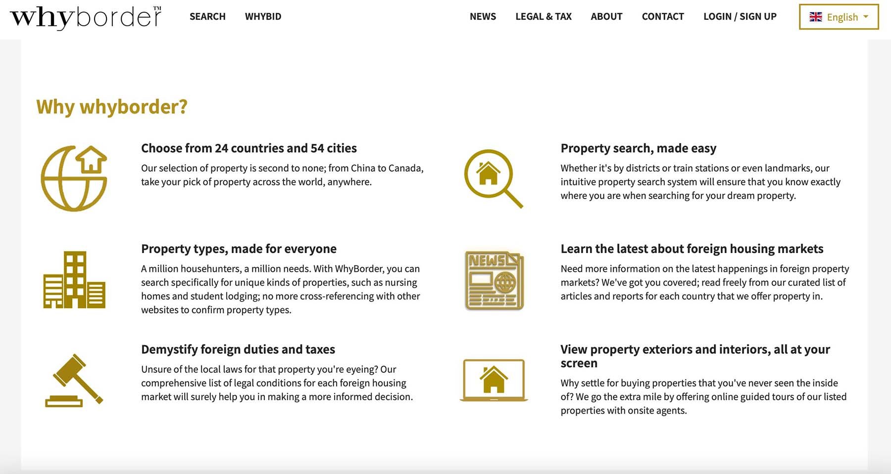 วายบอร์เดอร์ เปิดตัวปี 2020 ในรูปแบบแพลตฟอร์มเว็บไซต์แนวใหม่เพื่อยกระดับการลงทุนในธุรกิจอสังหาริมทรัพย์แบบข้ามพรหมแดน และมอบความสะดวกสบายให้กับผู้พัฒนาอสังหาริมทรัพย์ นายหน้า ผู้ขาย และผู้ซื้อ ผ่านการดำเนินงานระบบดิจิทัลแพลตฟอร์ม โดยทีมงานมืออาชีพที่มากด้วยประสบการณ์ในวงการอสังหาริมทรัพย์ พร้อมมุ่งปรับเปลี่ยนวงการอสังหาริมทรัพย์ผ่านการเสนอดีลการซื้อขายที่โปร่งใส ให้ผู้ซื้อทั่วโลกเยี่ยมชมโครงการแบบเสมือนจริง (Interactive Virtual 360 Tour) สื่อวิดีโอ และภาพนิ่ง ที่นำเสนอธีมการตกแต่งภายใน ผังโครงการ และเอกสารรายละเอียดผังห้อง ตลอดจนให้ข้อมูลเกี่ยวกับทำเลที่ตั้ง ระยะทางเชื่อมต่อระบบขนส่งสาธารณะ ช็อปปิ้งมอลล์ สถาบันการศึกษา และแลนด์มาร์กสำคัญของเมือง ซึ่งจะช่วยให้ผู้ใช้แพลตฟอร์มสามารถประเมินโครงการได้อย่างรอบคอบก่อนตัดสินใจซื้อ ผู้ซื้อยัง สามารถติดต่อพูดคุยกับนายหน้าและผู้พัฒนาโครงการ เพื่อรับคำแนะนำ หรือสอบถามข้อมูลเพิ่มเติม ปัจจุบันแพลตฟอร์มวายบอร์เดอร์ นำเสนอโครงการใน 54 เมืองใหญ่ ครอบคลุมพื้นที่ 6,173 เขต เส้นทางรถไฟ 555 สาย สถานีรถไฟ 9,537 แห่ง และแลนด์มาร์กสำคัญ 9,649 จุด ผ่านทางเว็บไซต์ whyborder.com