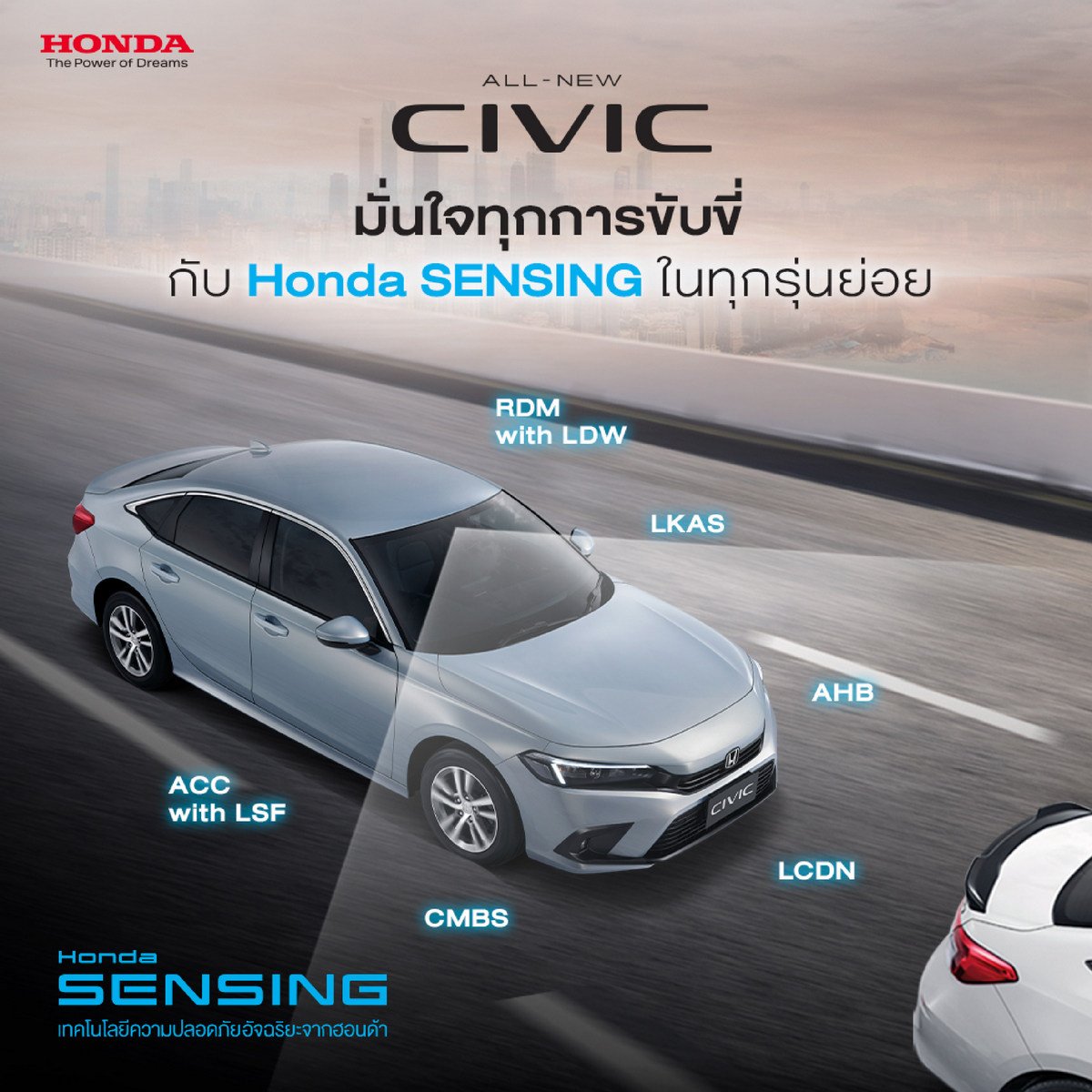 ฮอนด้า ซีวิค ใหม่ เจเนอเรชันที่ 11 ยกระดับประสบการณ์ความสมบูรณ์แบบในทุกมิติ โดดเด่นด้วยดีไซน์ภายนอกสปอร์ตพรีเมียมในทุกมุมมอง ภายในห้องโดยสารกว้างขวางสะดวกสบาย ให้ความแรงทรงพลังเร้าใจเกินใครในทุกรุ่นย่อย ด้วยขุมพลังเครื่องยนต์ VTEC TURBO 1.5 ลิตร ใหม่ พร้อมระบบเกียร์ CVT ให้กำลังสูงสุด 178 แรงม้า ให้อัตราการประหยัดน้ำมันดีเยี่ยม 17.2 กม./ลิตร และรองรับพลังงานทางเลือก E85 และมาพร้อมเทคโนโลยีความปลอดภัยอัจฉริยะ ฮอนด้า เซนส์ซิ่ง (Honda SENSING) ที่ยกระดับไปอีกขั้นกับระบบใหม่ ระบบเตือนเมื่อรถคันหน้าเคลื่อนที่ (Lead Car Departure Notification System: LCDN)