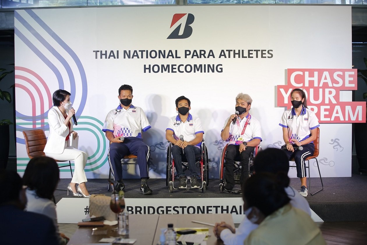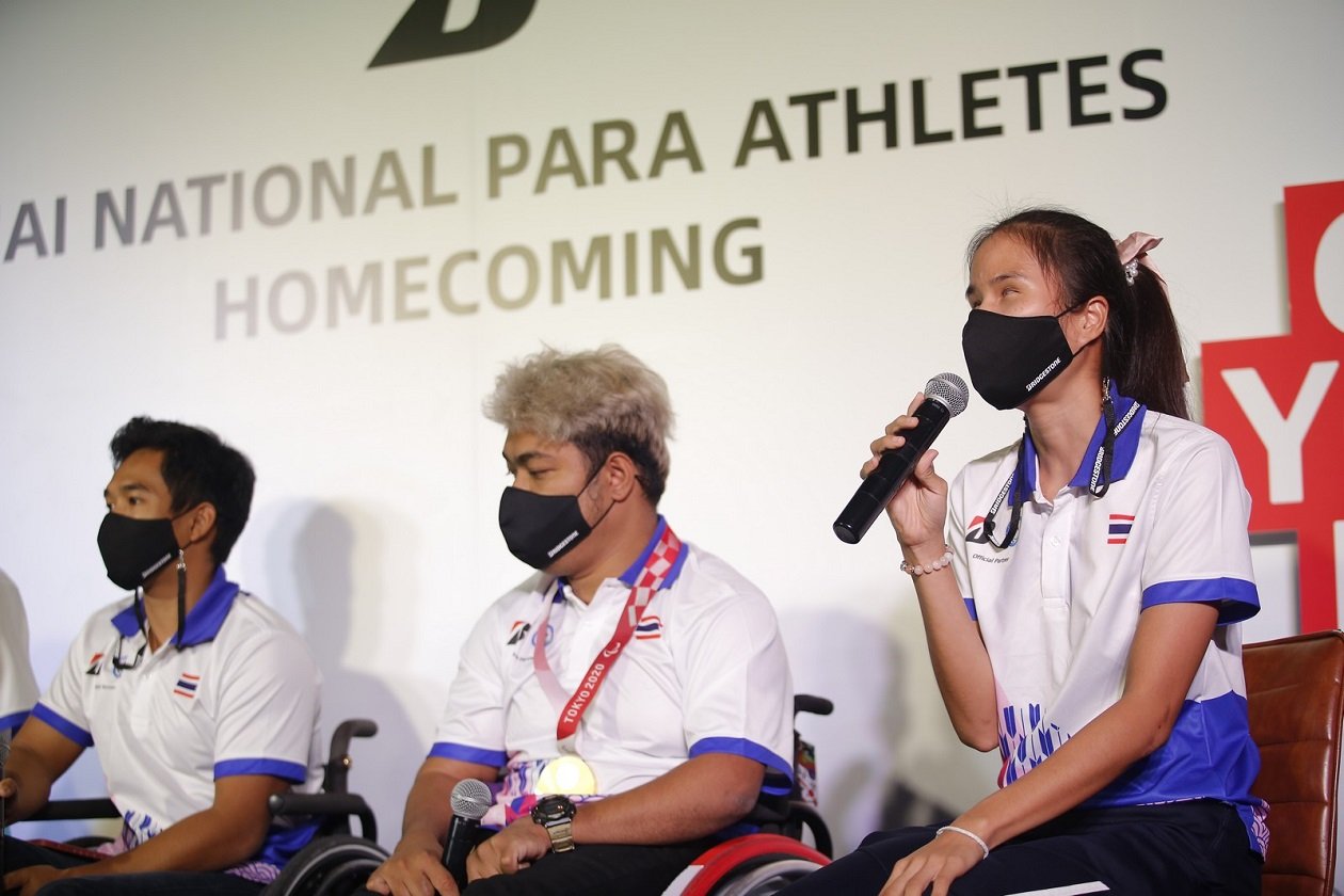 “พวกเราในฐานะนักกีฬาทีมบริดจสโตนประเทศไทย รู้สึกดีใจ และเป็นเกียรติอย่างมากที่บริดจสโตนประเทศไทย ให้การสนับสนุนพวกเราด้วยดีในทุกๆ ด้าน เสมอมา การไปร่วมแข่งขันโตเกียว 2020 พาราลิมปิกเกมส์ ครั้งนี้ ถือเป็นประสบการณ์ชีวิตอันยิ่งใหญ่ที่จะทำให้พวกเราก้าวไปสู่บททดสอบอื่น ๆ ที่ท้าทายในชีวิตได้อย่างมั่นใจ ทุกความสำเร็จของพวกเราในวันนี้ ขอมอบแทนคำขอบคุณต่อทุกกำลังใจที่แฟนกีฬาชาวไทยร่วมส่งข้อความให้กำลังใจแก่พวกเราตลอดการแข่งขัน และขอขอบคุณบริดจสโตนประเทศไทย อีกครั้งที่มอบโอกาสและสร้างแรงผลักดันในการไล่ล่าความสำเร็จของพวกเราในครั้งนี้” เจมส์-วรวุฒิ แสงอำภา ตัวแทนนักกีฬาทีมบริดจสโตนประเทศไทย กล่าวขอบคุณ