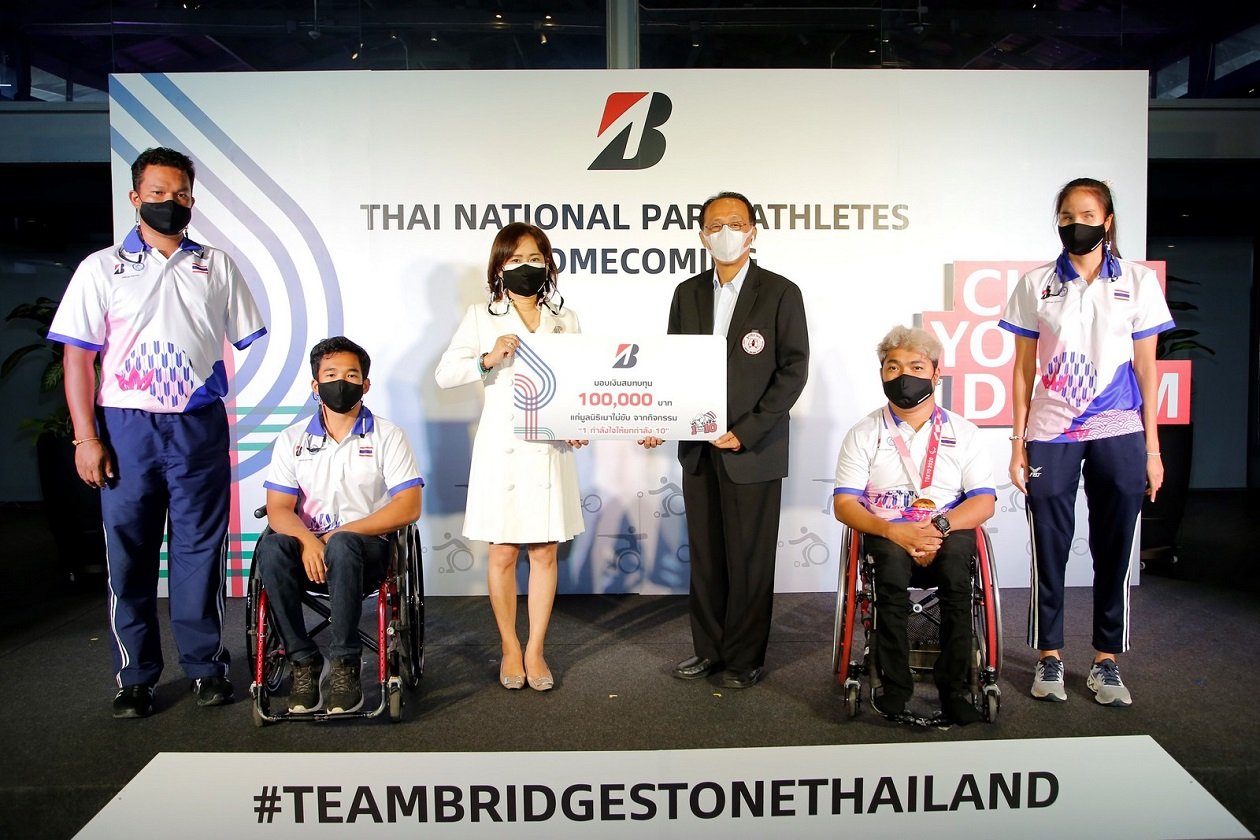 บริดจสโตนประเทศไทยต้อนรับ 4 นักกีฬาพาราลิมปิกทีมชาติไทย และในฐานะทีมบริดจสโตนประเทศไทย พร้อมมอบเงินสนับสนุนแก่เจมส์-วรวุฒิ แสงอำภา นักกีฬาบอคเชีย ทีมชาติไทย หลังสิ้นสุดภารกิจใน “โตเกียว 2020 พาราลิมปิกเกมส์” ที่โชว์ฟอร์มอย่างสุดกำลังคว้าเหรียญทอง ประเภททีม ในมหกรรมกีฬาระดับโลกได้เป็นผลสำเร็จ พร้อมส่งมอบเงิน 100,000 บาท จากโครงการ “1 กำลังใจให้ยกกำลัง 10” แก่ “มูลนิธิเมาไม่ขับ” เพื่อส่งต่อพลังไล่ล่าความฝันนี้ แปรเปลี่ยนเป็นพลังยิ่งใหญ่สู่ผู้พิการในสังคมไทย