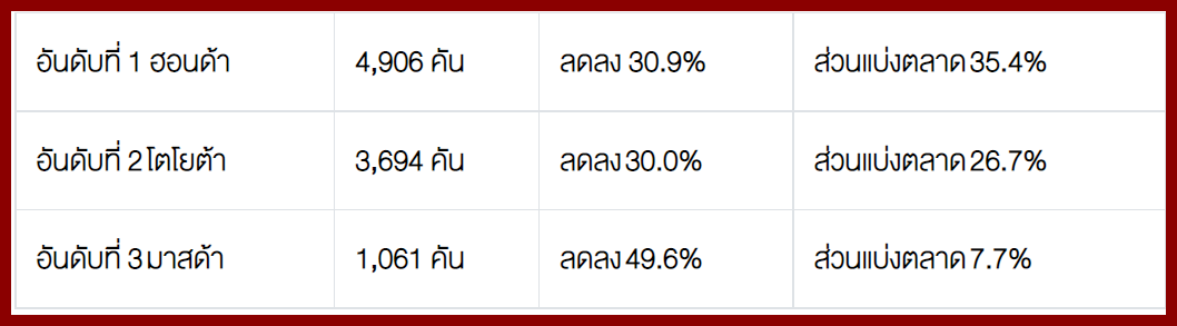 2. ตลาดรถยนต์นั่ง ปริมาณการขาย 13,845 คัน ลดลง 35%