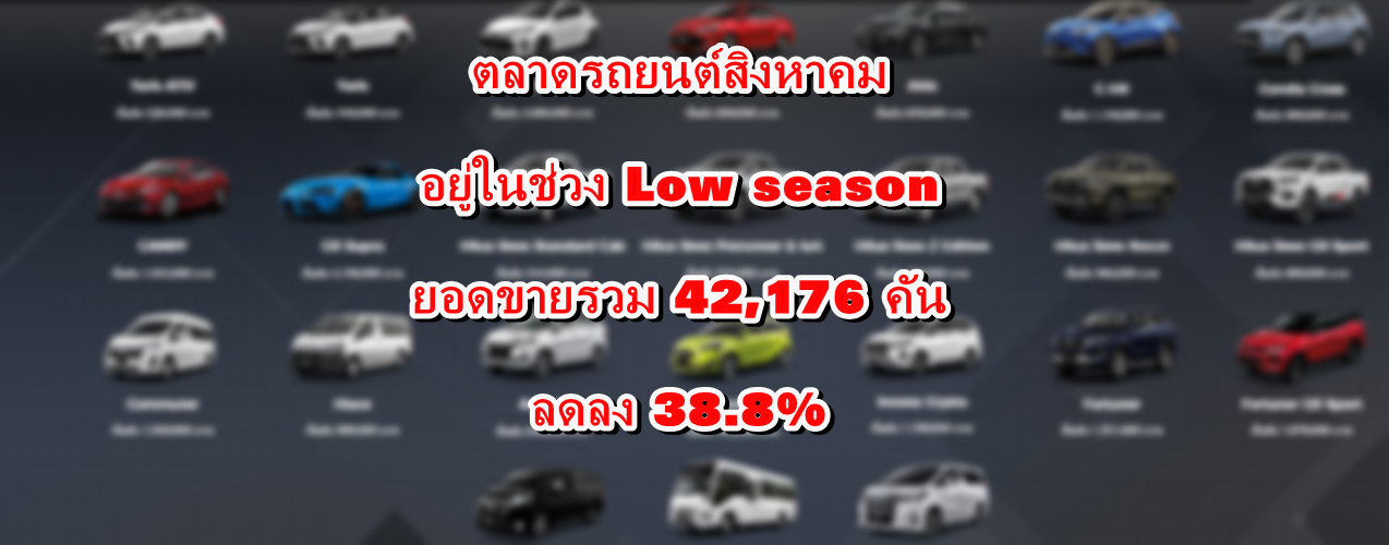 1. ตลาดรถยนต์รวม ปริมาณการขาย 42,176 คัน ลดลง 38.8%