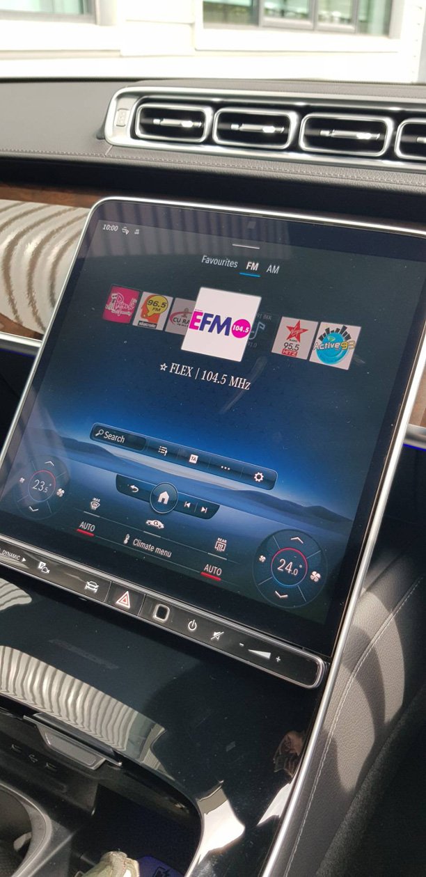 คอนโซลกลางมาพร้อมกับ MBUX7 หรือจอ Infortrainment ขนาด 12.8 นิ้ว ทัชสกรีน แบบ OLED ตัวจอออกแบบให้ขนาดทีเพรียวบาง พร้อมความจุที่สูงระดับคอมพิวเตอร์โน๊ตบุ๊ค ซึ่งภายในบรรจุฟังก์ชั่นการสั่งงานต่างๆ อาทิ ควบคุมระบบปรับอากาศ, ควบคุมเครื่องเสียง-เชื่อมต่อความบันเทิงต่างๆ ผ่านระบบ Wifi, ปรับโหมดการทำงานต่างๆ ของเครื่องยนต์-ระบบส่งกำลัง-ระบบกันสะเทือน-ระบบบังคับเลี้ยว, ปรับโทนสีของไฟเรืองแสงภายในห้องโดยสาร, เชื่อมต่อระบบนำทาง แถมยังสั่งงานได้ด้วยเสียงเพียงพูดคำว่า “สวัสดี เมอร์เซเดส”
