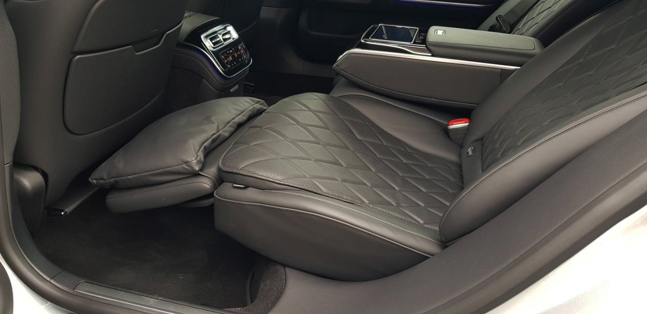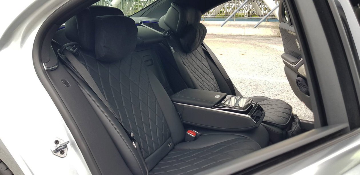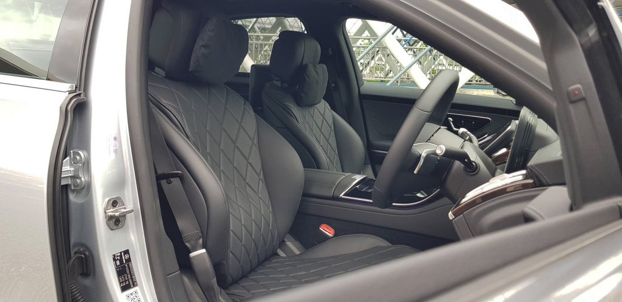 เบาะผู้โดยสารตอนหน้า และตอนหลังเป็นแบบปรับไฟฟ้าทุกที่นั่ง และพิเศษสุดกับเบาะผู้โดยสารตอนหลังฝั่งซ้ายออกแบบให้มีส่วนรองต้นขาเวลาที่มีการปรับเบาะเอนนอนเพื่อพักผ่อน วัสดุภายในห้องโดยสารหถ้มด้วยหนังแท้แบบ Nappa Leather ม่านบังแดงบริเวณประตู่คู่หลังสามารถเปิด-ปิดการใช้งานเพียงปลายนิ้วสัมผัส ส่วนม่านบังแดดด้านหลังจะเลื่อนลงเองอัตโนมัติเมื่อผู้ขับขี่เปลี่ยนตำแหน่งเกียร์เป็นถอยหลัง แล้วจะเลื่อนขึ้นมาอีกครั้งเมื่อมีการเปลี่ยนเกียร์เดินหน้า