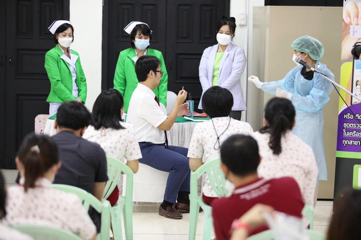 นายศรัณยู ชเนศร์ รองประธานกรรมการบริหาร โรงพยาบาลกล้วยน้ำไท และกลุ่มบริษัทในเครือ กล่าวว่า โรงเรียนถือเป็นเป้าหมายของ สปสช. ที่ต้องการให้อาจารย์-บุคลากรได้รับชุดตรวจ ATK เพื่อใช้ในการคัดกรองเบื้องต้น ซึ่งทางคลินิกกล้วยน้ำไทก็เป็นโรงพยาบาลที่ได้ร่วมมือกับ สปสช. อยู่แล้ว