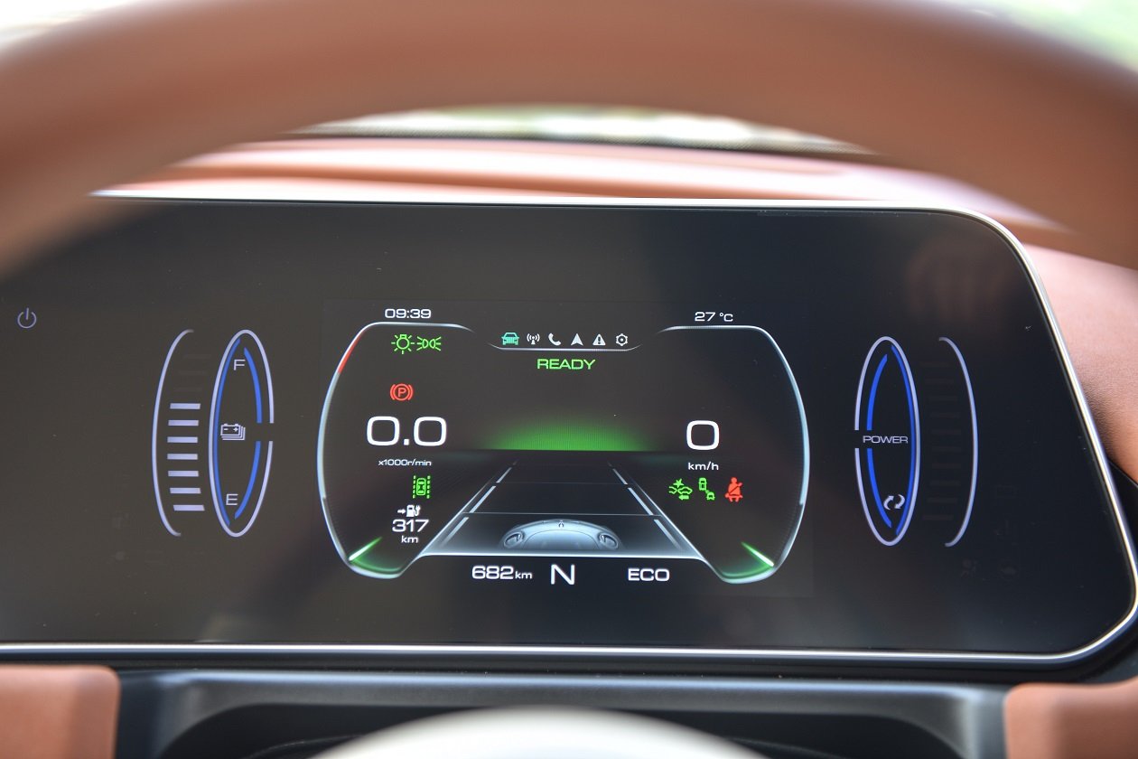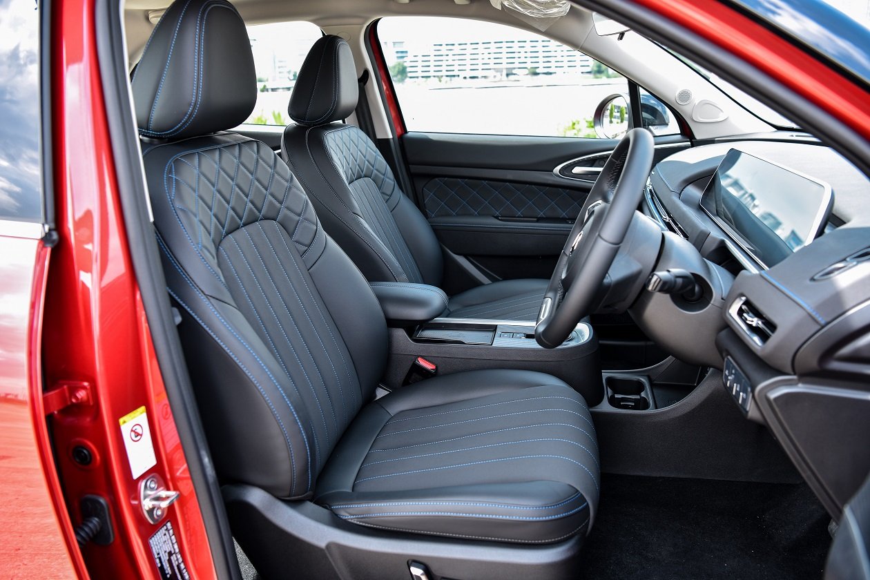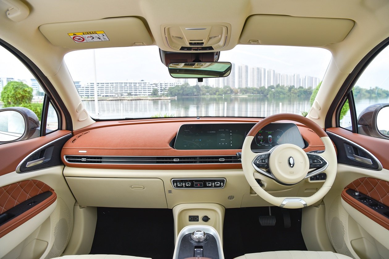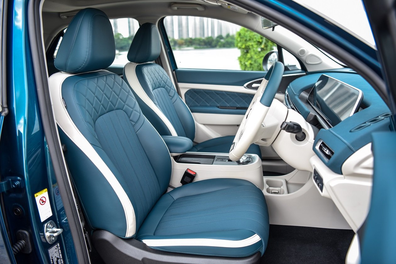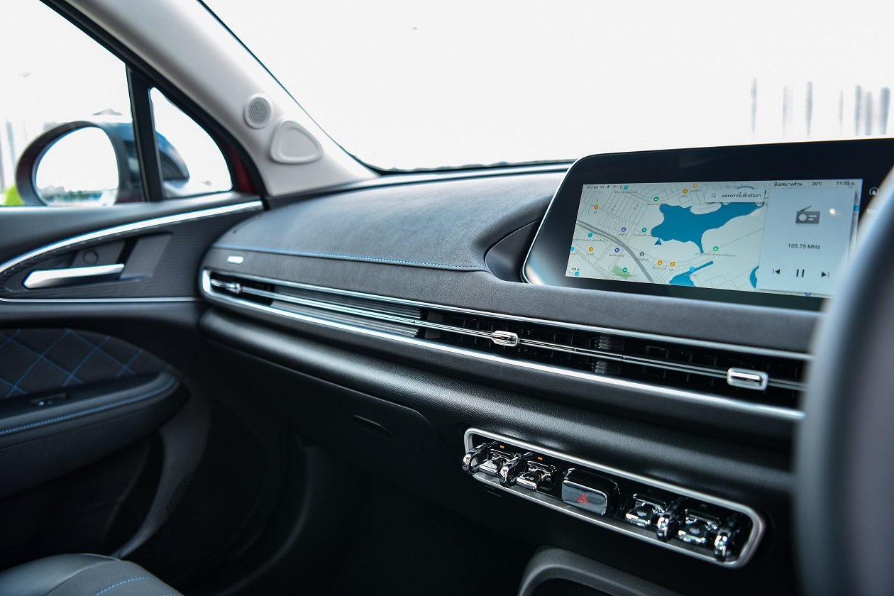ภายในห้องโดยสารห้อง Good Cat มีขนาดที่ใหญ่พอตัว ส่วนเนื่องเกิดมาจากการจัดวางตำแหน่งความยาวของฐานล้อนั่นเอง การดีไซน์ภายในเน้นความเรียบง่าย แต่แอบแฝงลูกเล่นไฮเทคกับชุดจอเรือนไมล์แบบ TFT ขนาดใหญ่ สามารถปรับเปลี่ยนรูปแบบได้ 2 แบบ ฟังก์ชั่นการทำงานต่างๆ ครบถ้วน มองเห็นชัดเจน และข้างๆ กันก็เป็นจอ Touch Screen สำหรับระบบการสั่งงานอื่นๆ อาทิ เครื่องเสียง, ระบบนำทาง, ระบบปรับอากาศ, การดูปริมาณของแบตเตอรี่ และการปรับตั้งค่าการทำงานต่างๆ ของตัวรถผ่านจากหน้าจอนี้ แถมยังเชื่อมต่อ Apple Car Play และ Android Auto ได้ตามยุคสมัย และยังสั่งงานด้วยเสียงได้ค่อนข้างแม่นยำ แม้อาจมีเอ๋อๆ บ้างในบางครั้ง ส่วนปุ่มการทำงานแอบมีการนำรูปแบบของรถที่คุณมองก็รู้ว่ายี่ห้ออะไรมาใช้ แต่ก็เข้ากับสไตล์การออกแบบภายใน