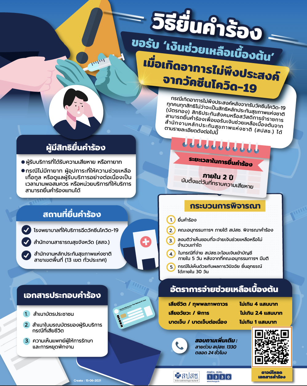 ทั้งนี้ผู้ร้องเรียนกรณีนี้เป็นผู้มีสิทธิประกันสังคม ภายหลังรับบริการฉีดวัคซีนโควิด-19 เกิดอาการไม่พึงประสงค์ขึ้น และได้เข้ายื่นเรื่องขอรับการช่วยเหลือเบื้องต้นจากผลกระทบที่เกิดขึ้นภายหลังจากการเข้ารับบริการฉีดวัคซีนโควิด-19 ที่ สปสช.เขต 13 กทม. เมื่อวันที่ 16 พฤศจิกายน 2564 โดย สปสช.เขต 13 กทม. ได้นำเรื่องเข้าสู่กระบวนการพิจารณาตามขั้นตอนต่อไป