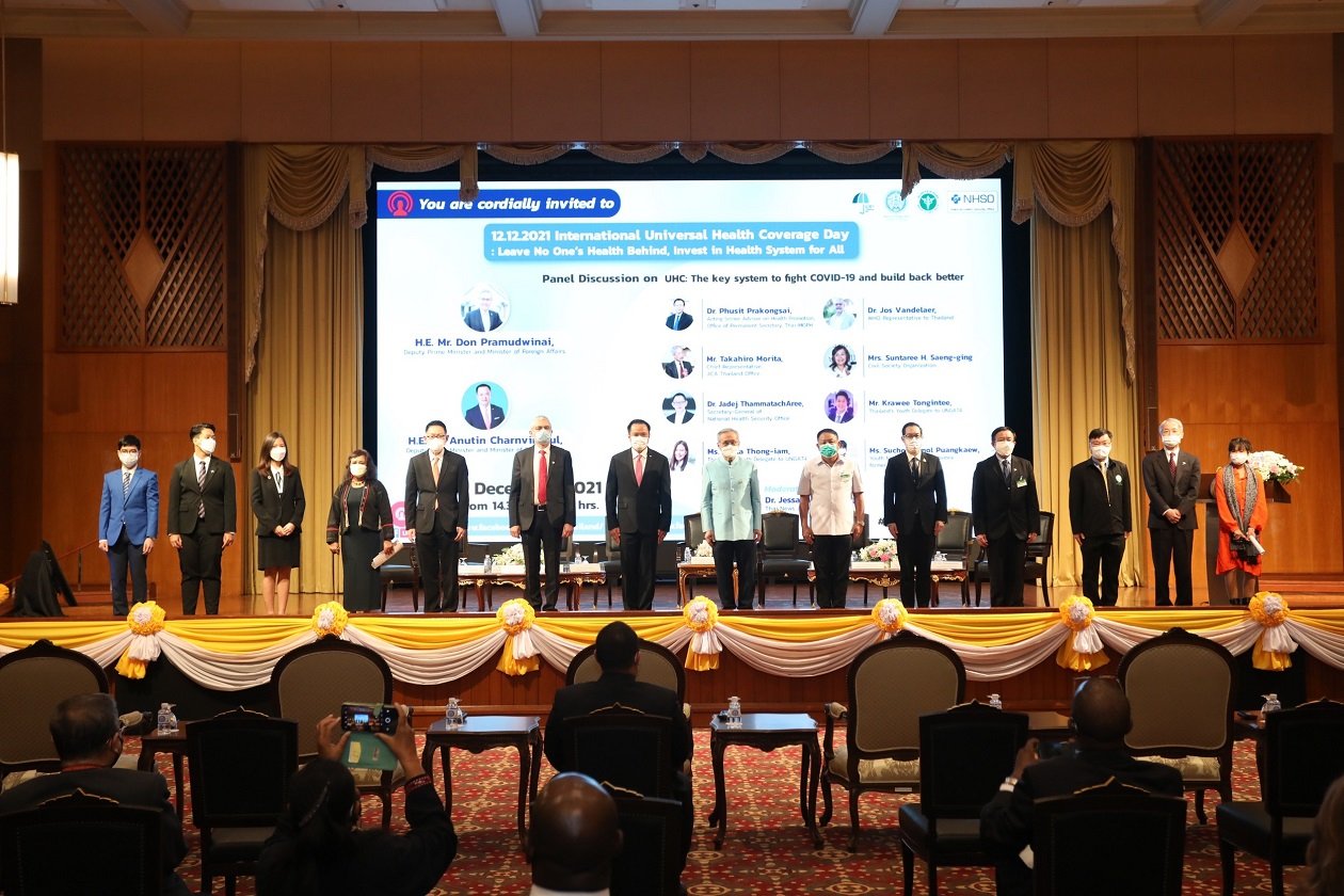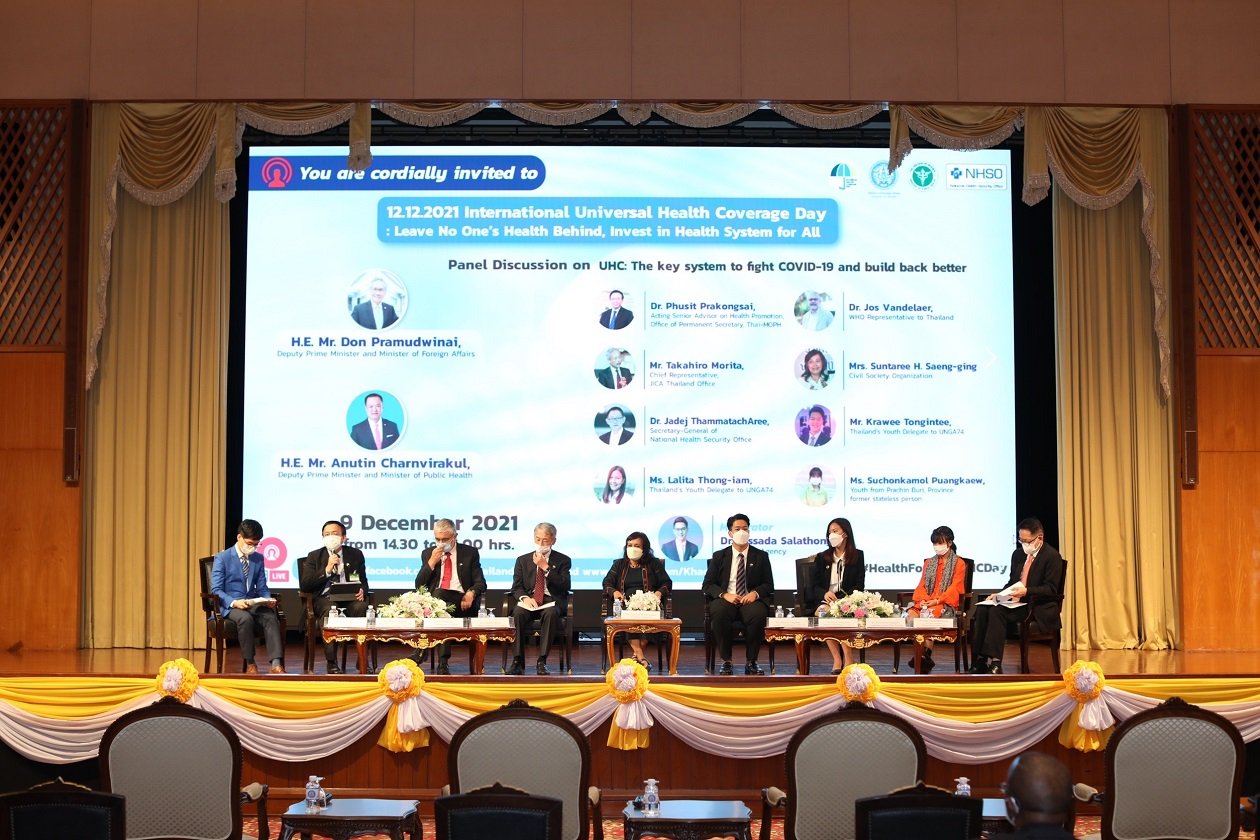 เมื่อวันที่ 9 ธันวาคม 2564 ที่ผ่านมา ผู้เชี่ยวชาญด้านระบบสาธารณสุขและหลักประกันสุขภาพเข้าร่วมเสวนา UHC: The key system to fight COVID-19 and build back better ณ กระทรวงการต่างประเทศ ในงานวันหลักประกันสุขภาพถ้วนหน้าสากล ซึ่งตรงกับวันที่ 12 ธันวาคมทุกปี จัดโดยกระทรวงการต่างประเทศ กระทรวงสาธารณสุข และสำนักงานหลักประกันสุขภาพแห่งชาติ (สปสช.)