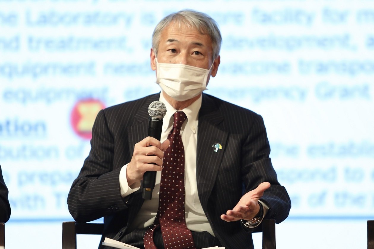 ด้านนายทาคาฮิโระ โมริตะ (Takahiro Morita) หัวหน้าผู้แทนองค์การความร่วมมือระหว่างประเทศแห่งญี่ปุ่น (Japan International Cooperation Agency: JICA) ประจำประเทศไทย กล่าวว่าการรับมือโรคระบาดจำเป็นต้องอาศัยความร่วมมือข้ามประเทศ ในส่วนของไจก้า ได้ทำงานร่วมกับไทยมายาวนานในการสร้างระบบสุขภาพที่เข้มแข็ง รวมถึงผลักดันระบบประกันสุขภาพถ้วนหน้าในเวทีโลก