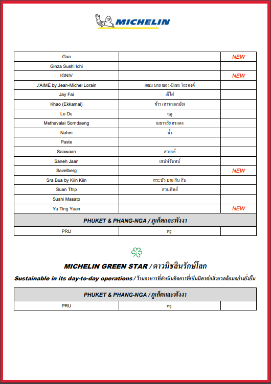นอกจากนี้ ยังมีร้านใหม่ติดโผร้านแนะนำในคู่มือ ‘มิชลิน ไกด์’ เป็นครั้งแรกอีก 51 ร้าน
