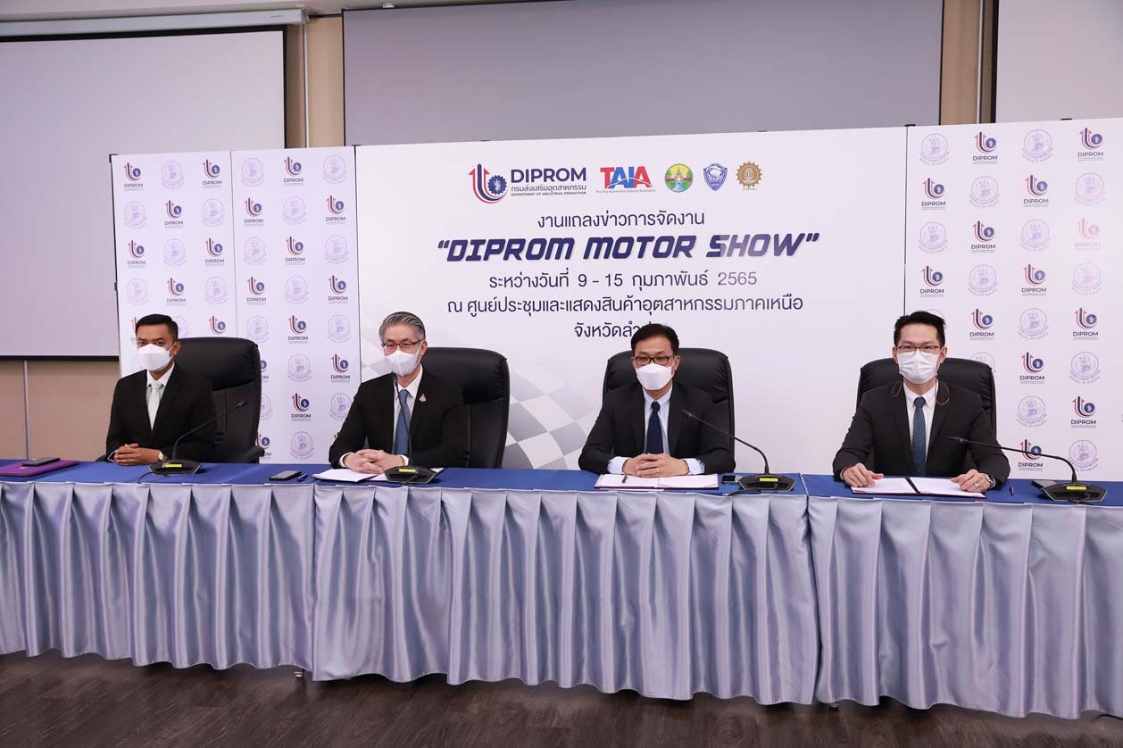 นายณัฐพล รังสิตพล อธิบดีกรมส่งเสริมอุตสาหกรรม กล่าวว่า อุตสาหกรรมยานยนต์ยังคงเป็นอุตสาหกรรมที่มีศักยภาพ และเป็นปัจจัยสำคัญต่อการเติบโตของมูลค่าทางเศรษฐกิจของประเทศ เนื่องด้วยไทยยังคงเป็นฐานสำคัญในการผลิตทั้งชิ้นส่วนยานยนต์ การประกอบรถยนต์ รวมถึงการผลิตรถยนต์เชิงพาณิชย์ ซึ่งสถานการณ์อุตสาหกรรมยานยนต์ไทยปี 2564 ที่ผ่านมานั้นพบว่าเริ่มมีการฟื้นตัวอย่างต่อเนื่องจากการส่งออกที่ปรับตัวเพิ่มขึ้น โดยมีการผลิตรถยนต์ 1.6 ล้านคัน ซึ่งเพิ่มขึ้น 12% เมื่อเปรียบเทียบกับปี 2563 แบ่งเป็นขายในประเทศ 0.75 ล้านคัน และส่งออกต่างประเทศ 0.85 ล้านคัน ส่วนในปี 2565 ได้ประมาณการว่าจะมีการผลิตรถยนต์ 1.7-1.8 ล้านคัน ซึ่งมีปัจจัยที่สำคัญทั้งการเปิดประเทศให้นักท่องเที่ยวเข้ามาเที่ยวมากขึ้น มาตรการส่งเสริมการลงทุนและสิทธิประโยชน์จากภาครัฐ รวมถึงการส่งออกที่ขยายตัวตามเศรษฐกิจโลกที่ฟื้นตัว ดังนั้น ดีพร้อม จึงได้จับมือกับสมาคมอุตสาหกรรมยานยนต์ไทย รวมถึงภาคีเครือข่ายภาครัฐ-เอกชน ร่วมจัดงาน “DIPROM MOTOR SHOW” ซึ่งจะจัดขึ้นที่อาคารศูนย์ประชุมและแสดงสินค้าอุตสาหกรรมภาคเหนือ จังหวัดลำปาง ระหว่างวันที่ วันที่ 9-15 กุมภาพันธ์ 2565 และเป็นครั้งแรกที่ ดีพร้อม ดำเนินการจัดกิจกรรมดังกล่าว เพื่อกระตุ้นตลาดยานยนต์โดยเฉพาะในกลุ่มจังหวัดภาคเหนือ และเป็นการเพิ่มช่องทางในการจำหน่ายสำหรับผู้ประกอบการอุตสาหกรรมยานยนต์ โดยมีค่ายรถยนต์และจักรยานยนต์ชั้นนำเข้าร่วมมากกว่า 15 แบรนด์ ซึ่งคาดว่าจากการจัดกิจกรรมนี้จะสามารถสร้างมูลค่าทางเศรษฐกิจให้กับผู้ประกอบภาคการผลิตของอุตสาหกรรมยานยนต์ได้กว่า 100 ล้านบาท
