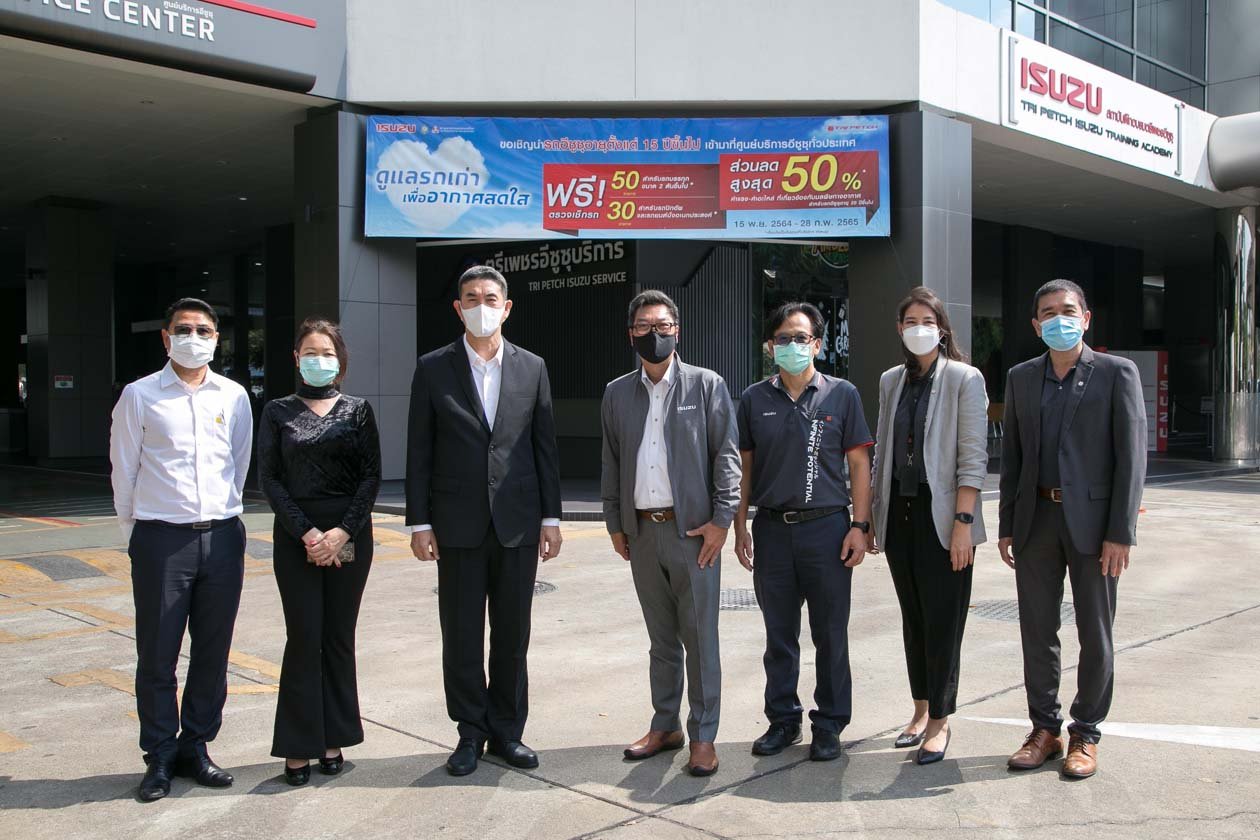 กลุ่มอีซูซุร่วมกับกรมควบคุมมลพิษ กระทรวงทรัพยากรธรรมชาติและสิ่งแวดล้อม โดย คุณอรรถพล เจริญชันษา อธิบดีกรมควบคุมมลพิษ เยี่ยมชมศูนย์บริการมาตรฐานอีซูซุ รณรงค์เชิญชวนลูกค้าเข้าร่วมโครงการ “ดูแลรถเก่า เพื่ออากาศสดใส” โดยนำรถอีซูซุที่มีอายุตั้งแต่ 15 ปีขึ้นไป เข้าศูนย์บริการมาตรฐานอีซูซุ* รับบริการตรวจเช็กฟรีกว่า 30 รายการสำหรับรถปิกอัพและรถนั่งอเนกประสงค์ และฟรีกว่า 50 รายการสำหรับรถบรรทุกขนาดกลางและใหญ่ พร้อมรับส่วนลดสูงสุดถึง 50%** สำหรับค่าแรงและค่าอะไหล่ที่เกี่ยวข้องกับการลดมลพิษทางอากาศ*